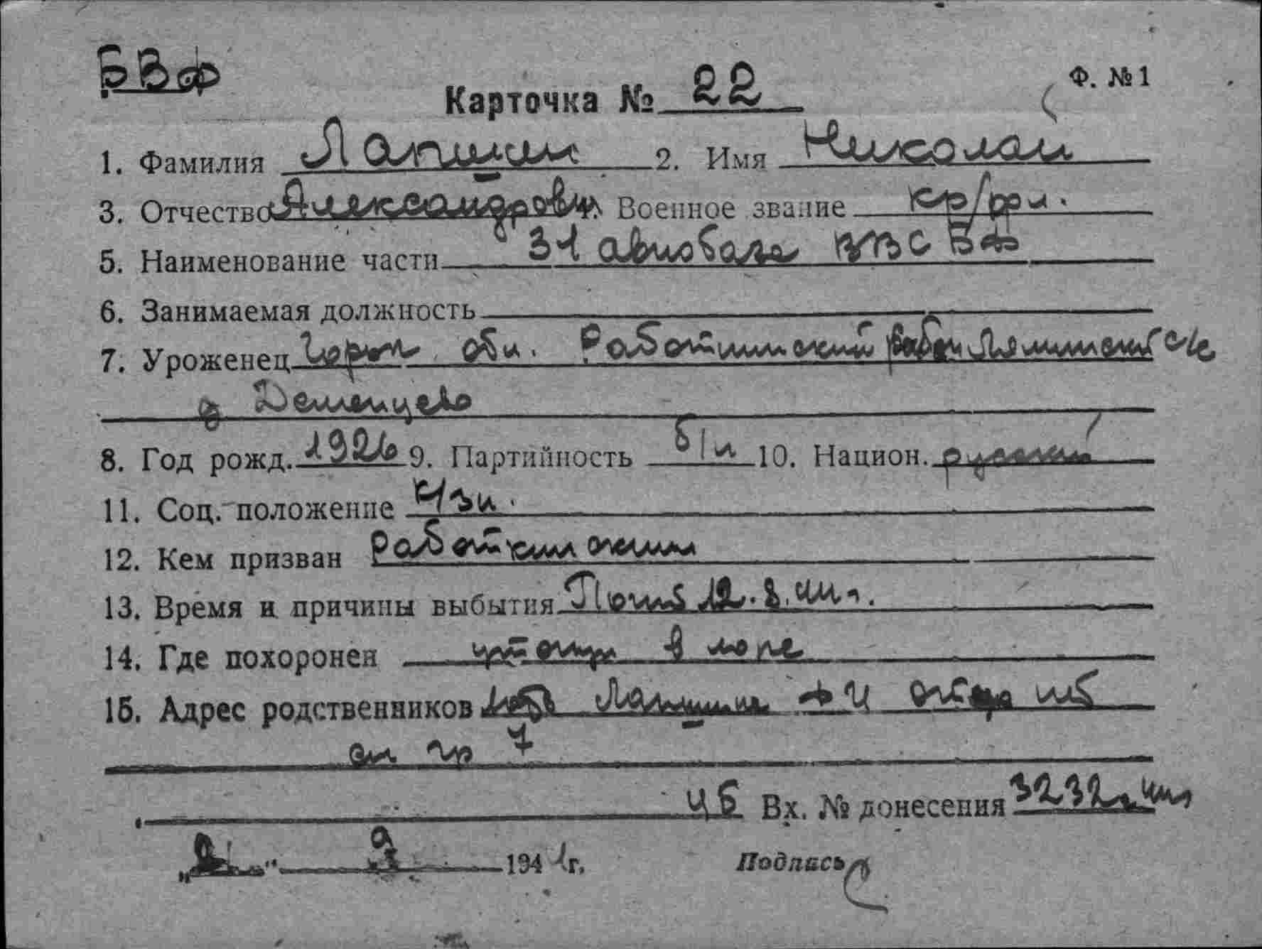 Донесение о безвозвратных потерях 3232 от 19.09.1944 (ЦВМА, Ф. 864, О. 1, Д. 1342).