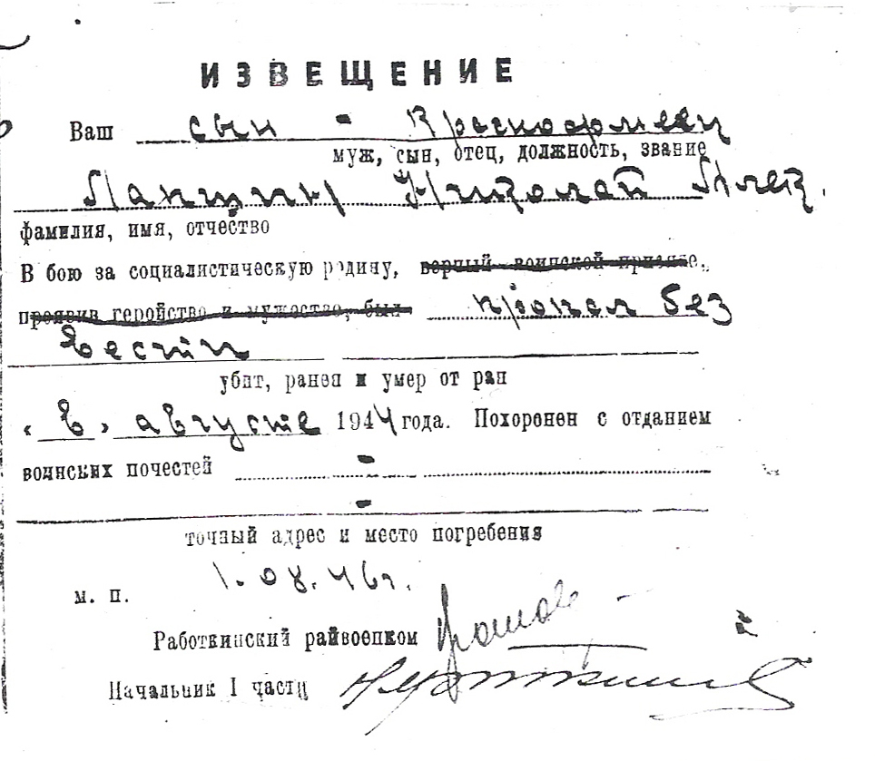 Донесение о безвозвратных потерях 6874 от 16.11.1944 (ЦВМА, Ф. 2941, О. 2, Д. 90).