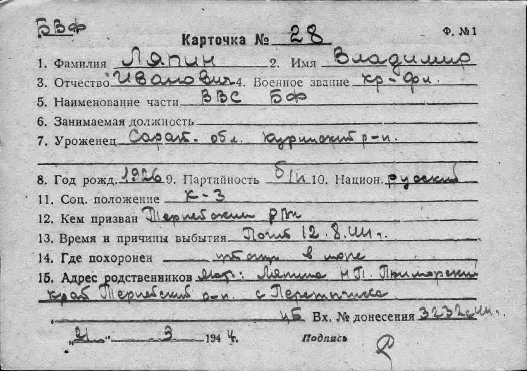 Карточка (ЦВМА, Картотека безвозвратных потерь).