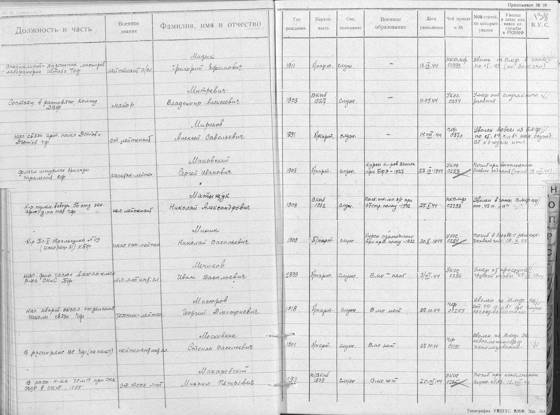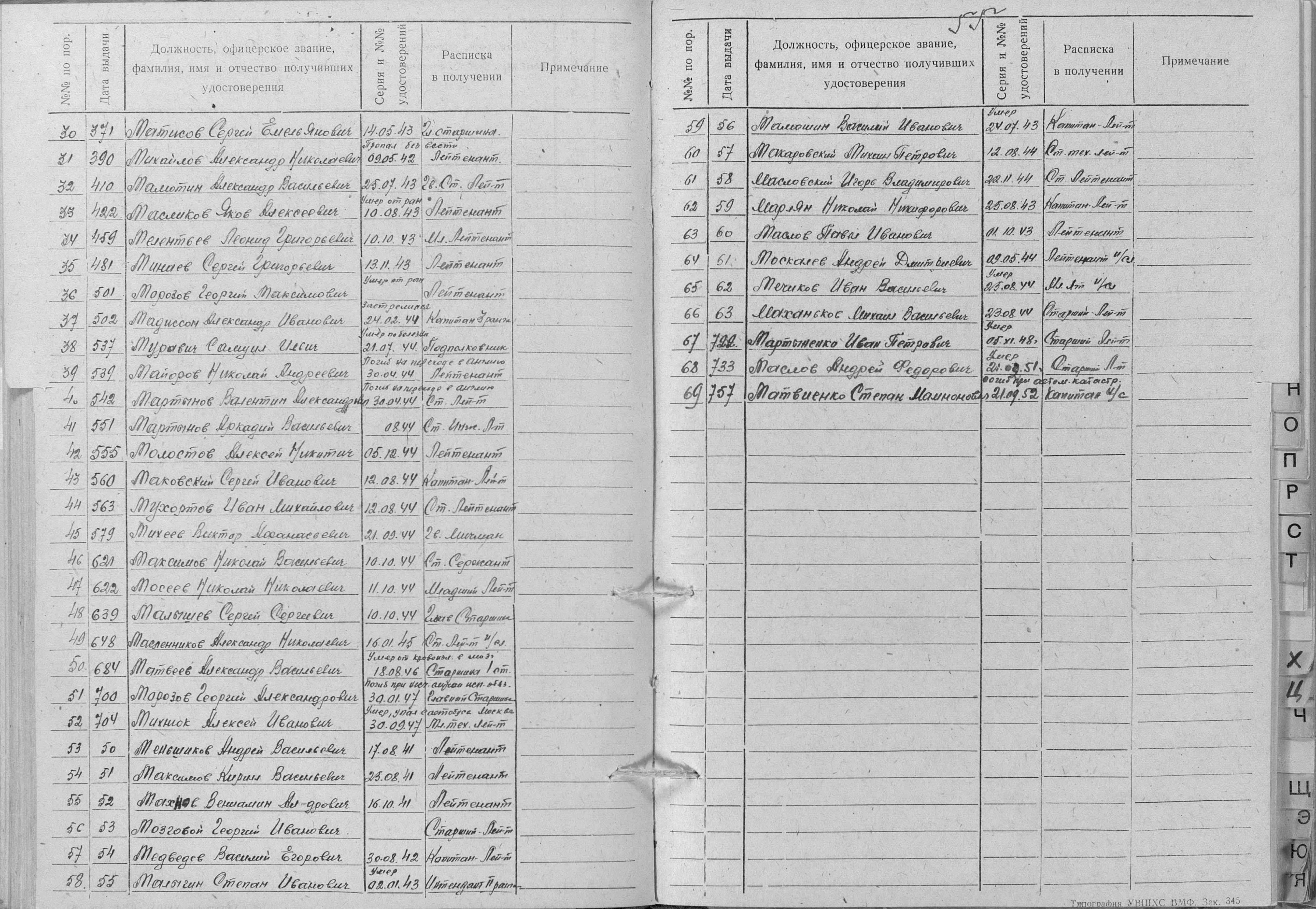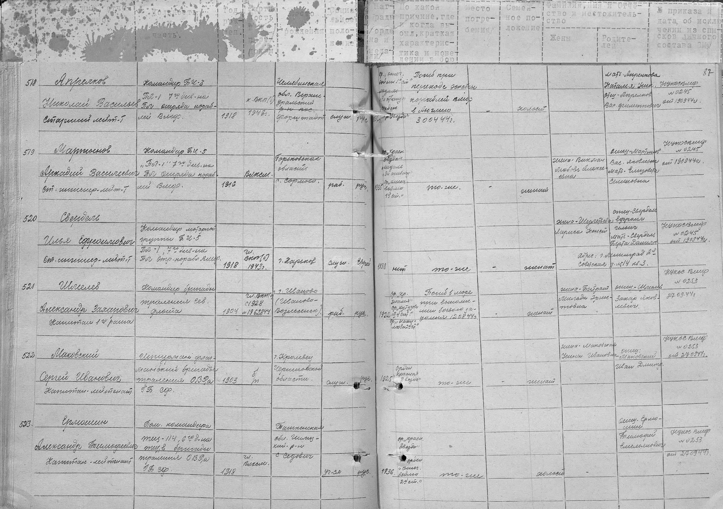 Книга учета безвозвратных потерь начсостава за Отечественную войну Командный отдел СФ (ЦВМА, Ф. 691, О. 1, Д. 4).