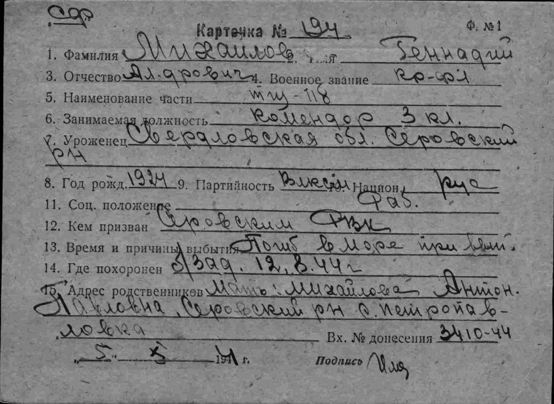 Карточка (ЦВМА, Картотека безвозвратных потерь).