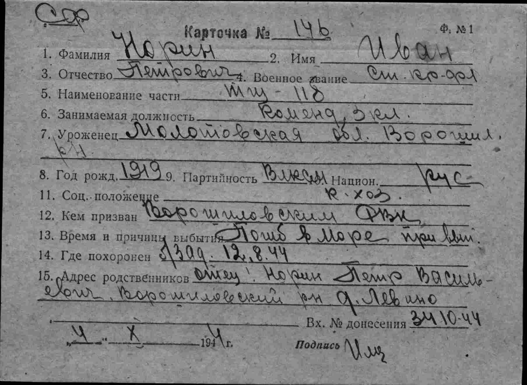 Карточка (ЦВМА, Картотека безвозвратных потерь).