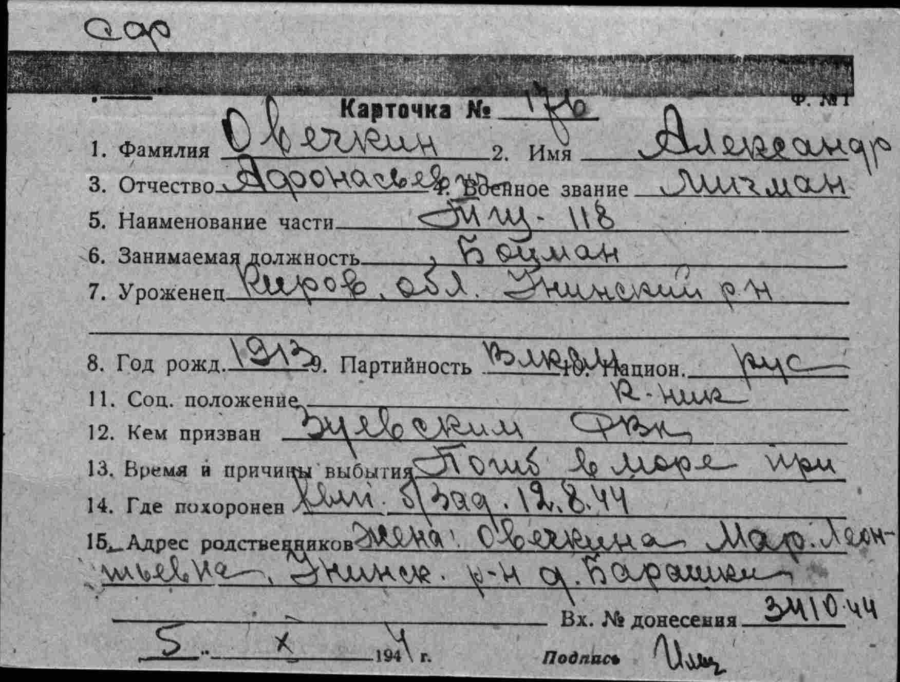Карточка (ЦВМА, Картотека безвозвратных потерь).