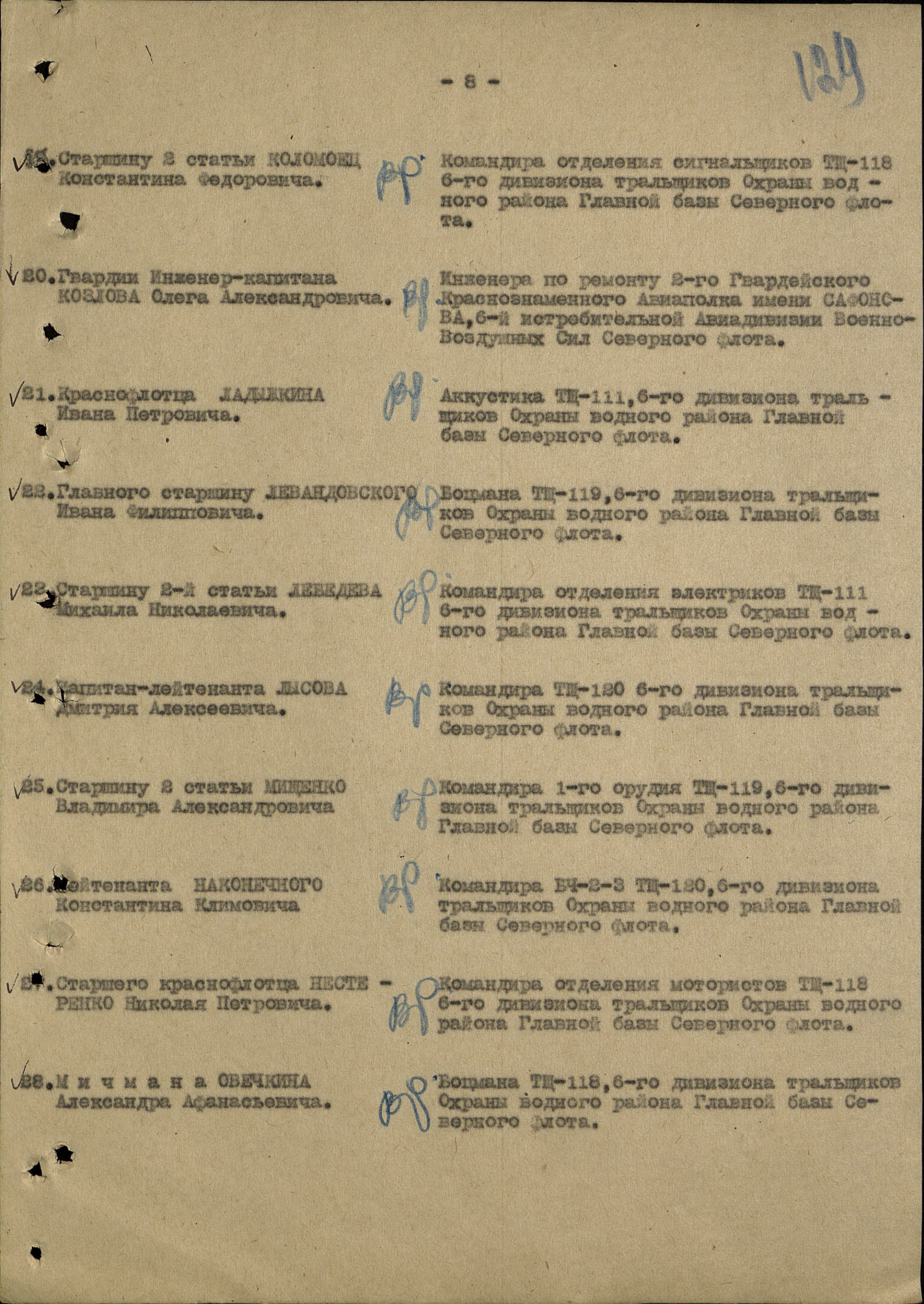 Донесение о безвозвратных потерях 5467 от 27.11.1944 (ЦВМА, Ф. 4038, О. 54, Д. 23).