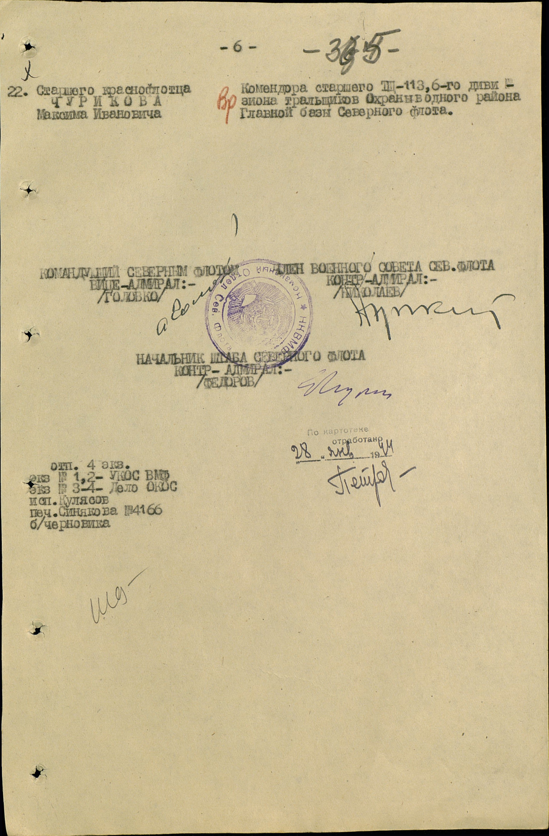 Донесение о безвозвратных потерях 3410 от 03.10.1944 (ЦВМА, Ф. 864, О. 1, Д. 1358).