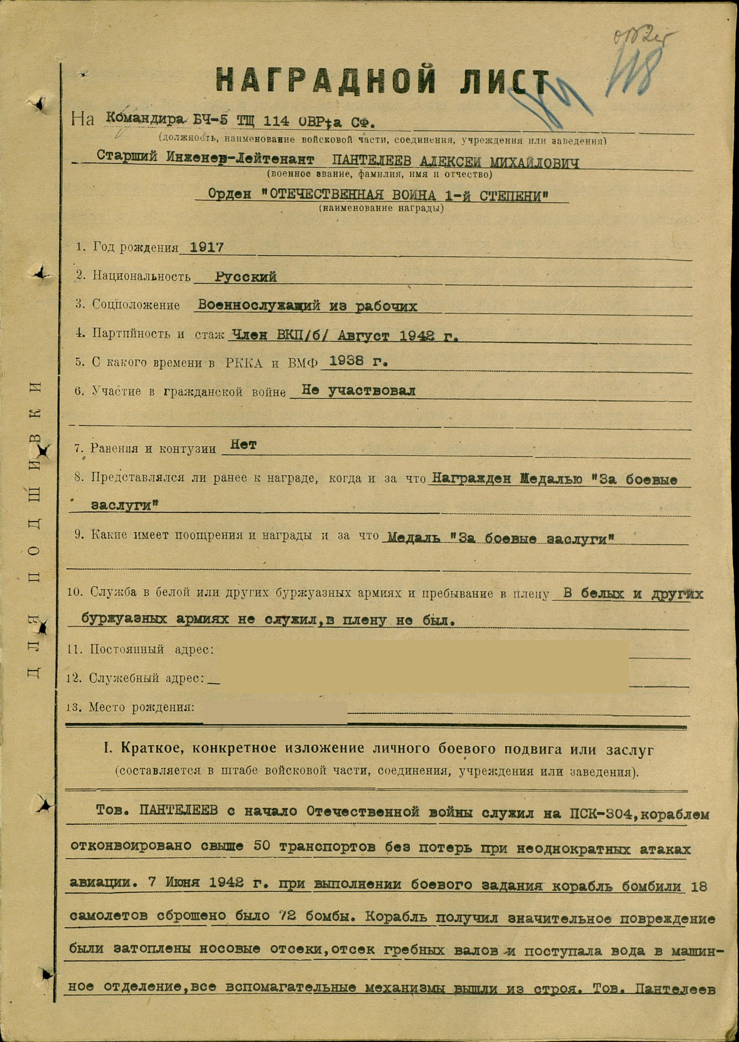 Донесение о безвозвратных потерях 17471 от 02.10.1944 (ЦВМА, Ф. 3, О. 1, Д. 402).