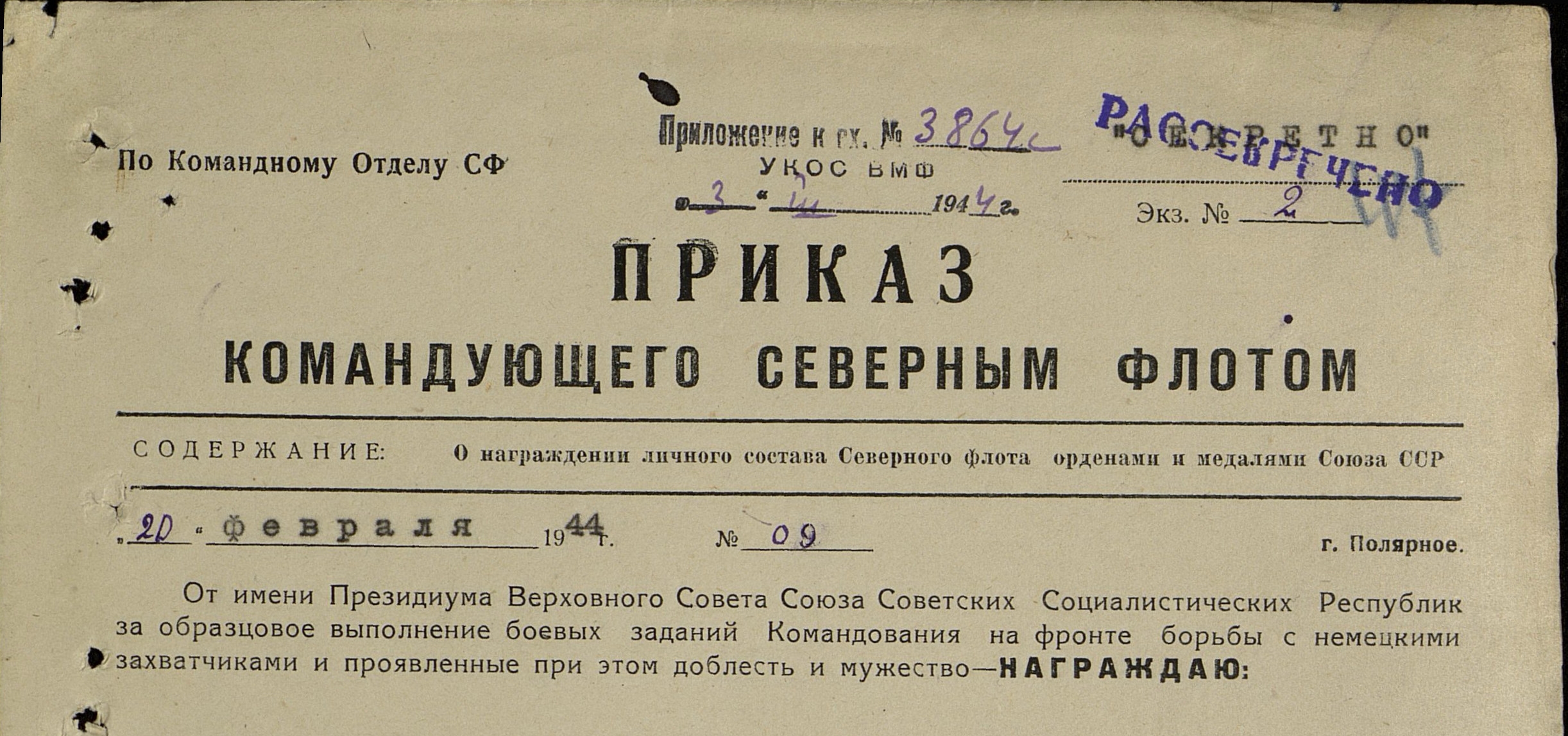 Донесение о безвозвратных потерях 3410 от 03.10.1944 (ЦВМА, Ф. 864, О. 1, Д. 1358).
