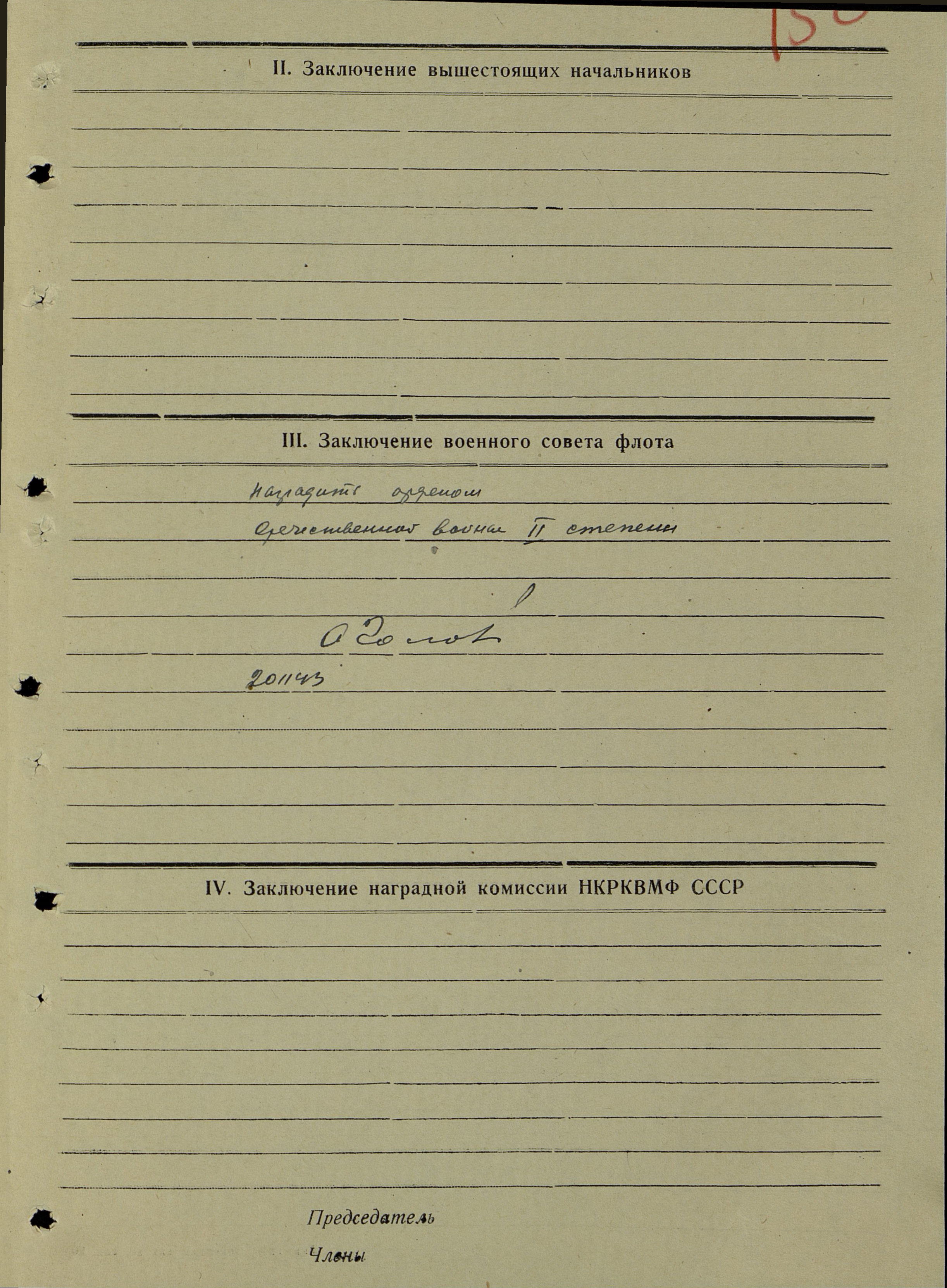 Наградной лист.