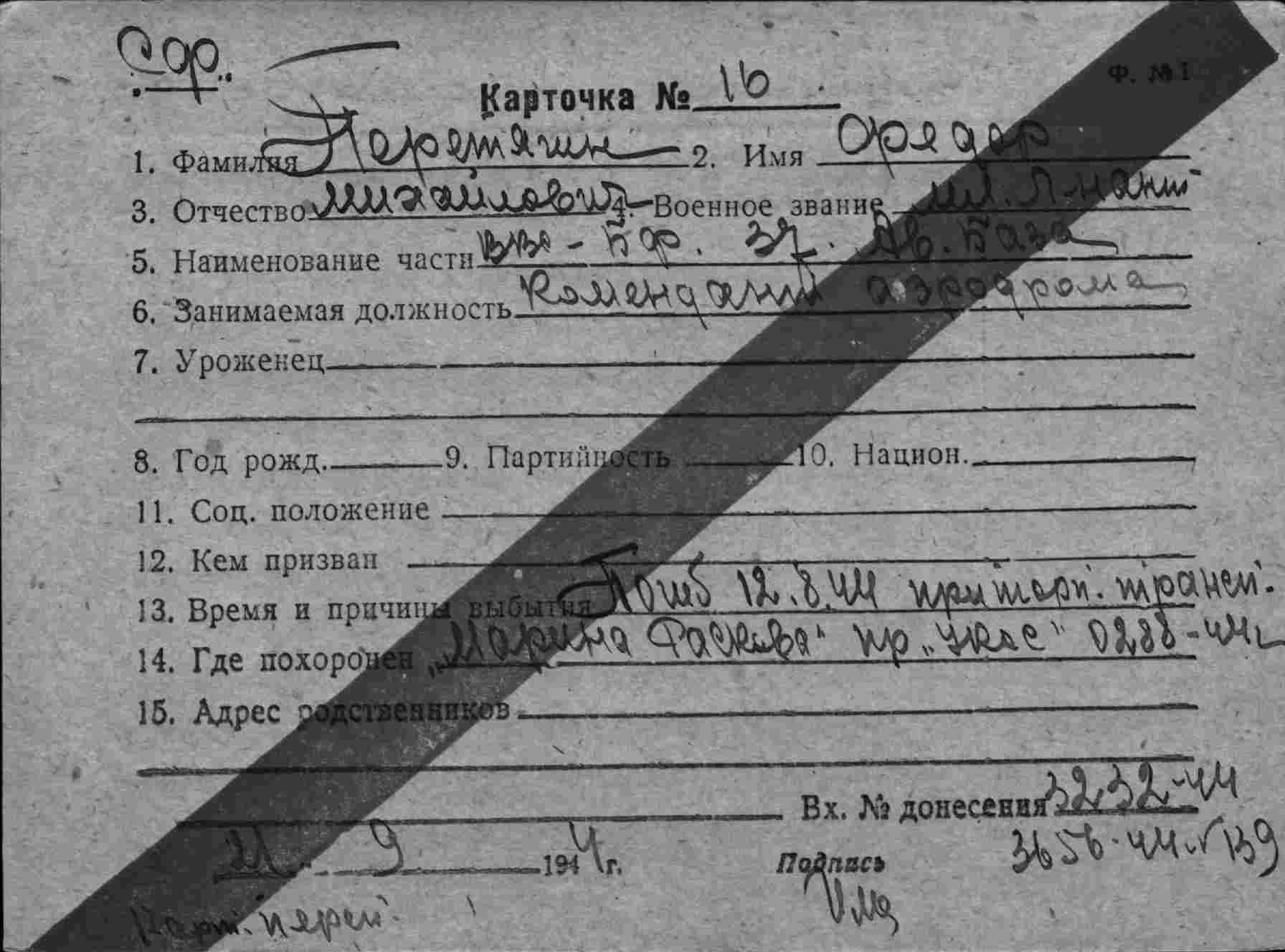 Карточка (ЦВМА, Картотека безвозвратных потерь).