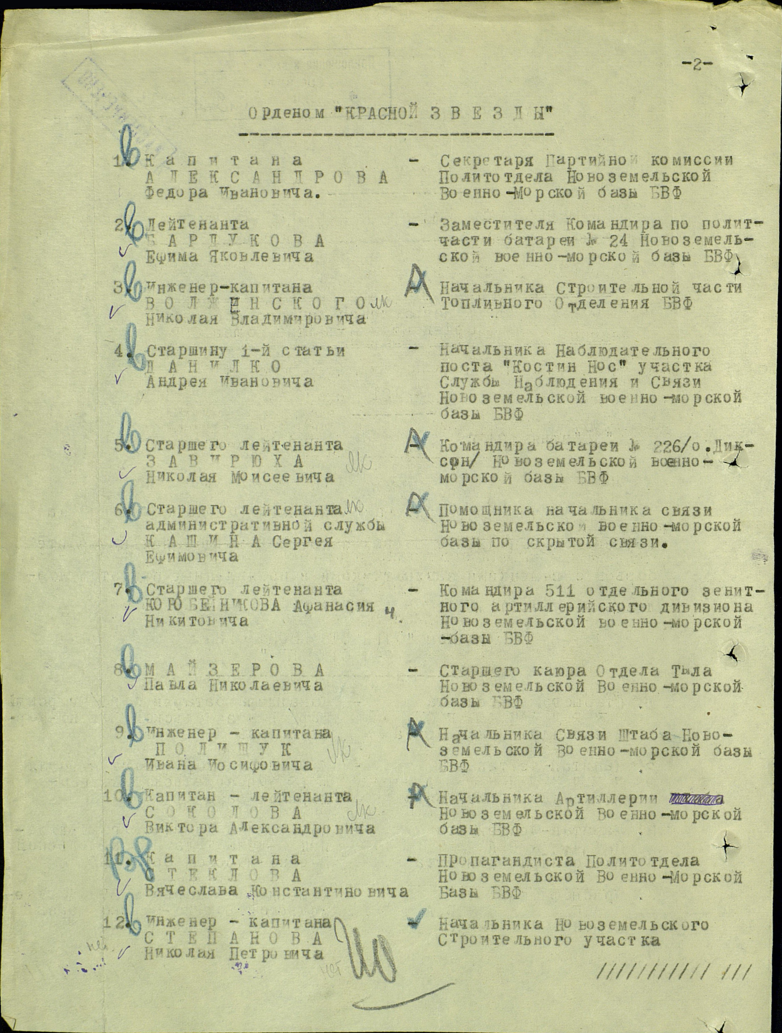 Список безвозвратных потерь командно-начальствующего состава Беломорской военной флотилии (ЦВМА, Ф. 1650, О. 1, Д. 11).