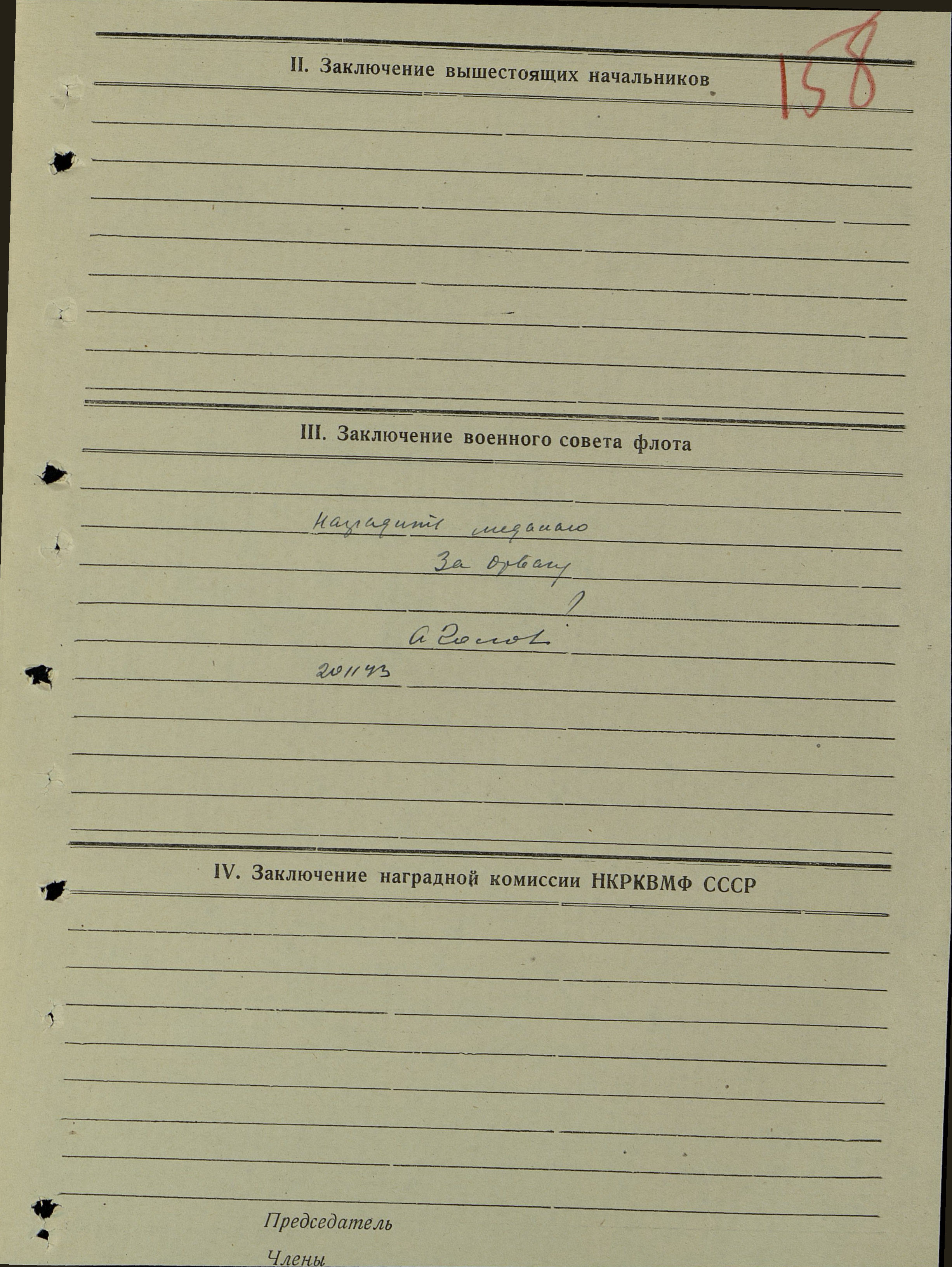 Наградной лист.