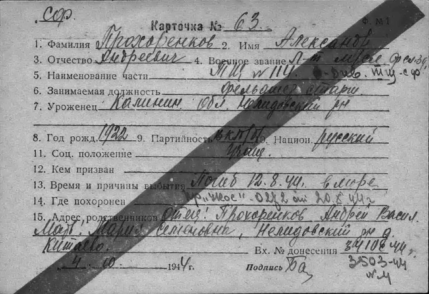 Карточка (ЦВМА, Картотека безвозвратных потерь).