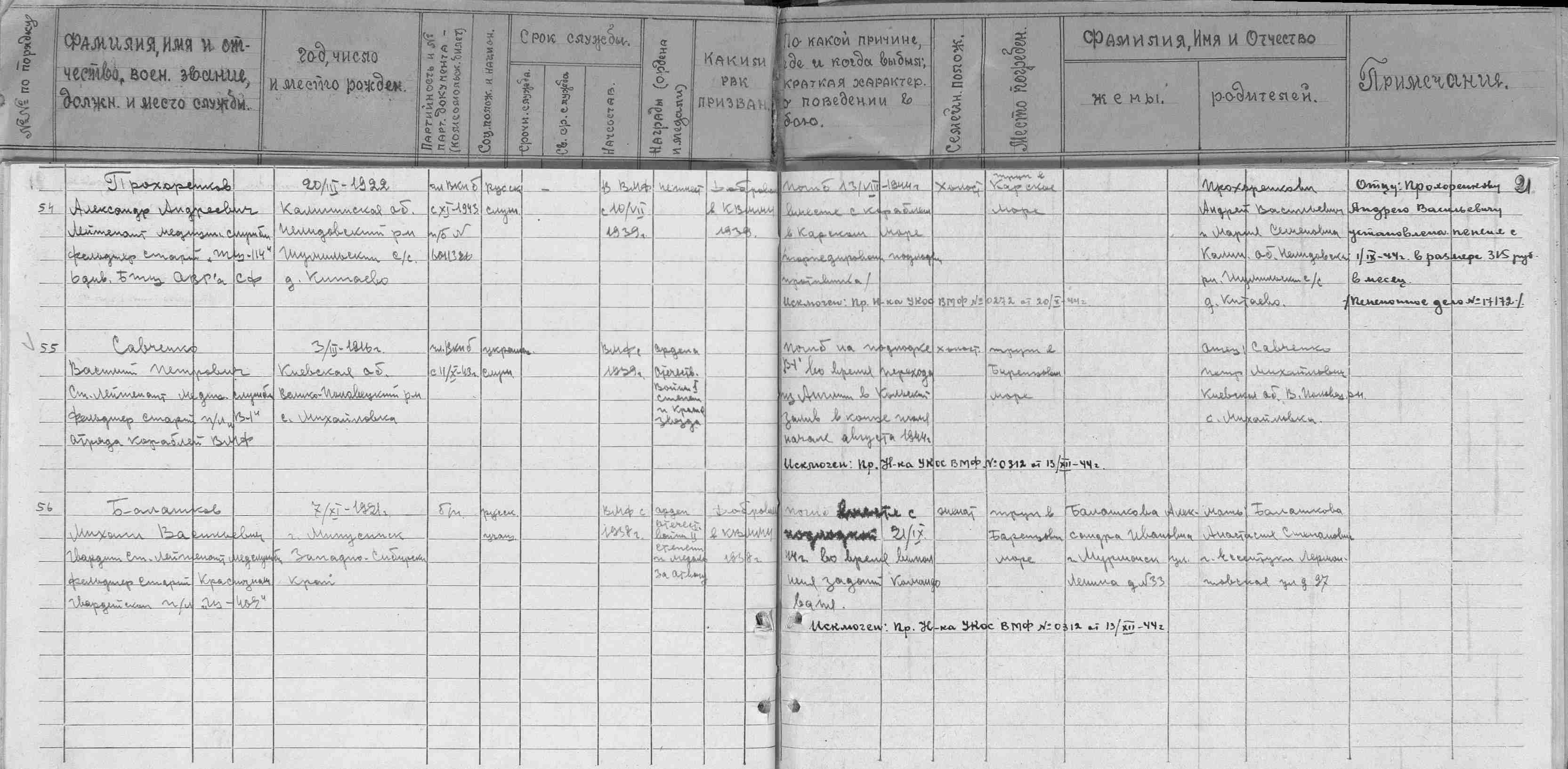 Донесение о безвозвратных потерях 5467 от 27.11.1944 (ЦВМА, Ф. 4038, О. 54, Д. 23).