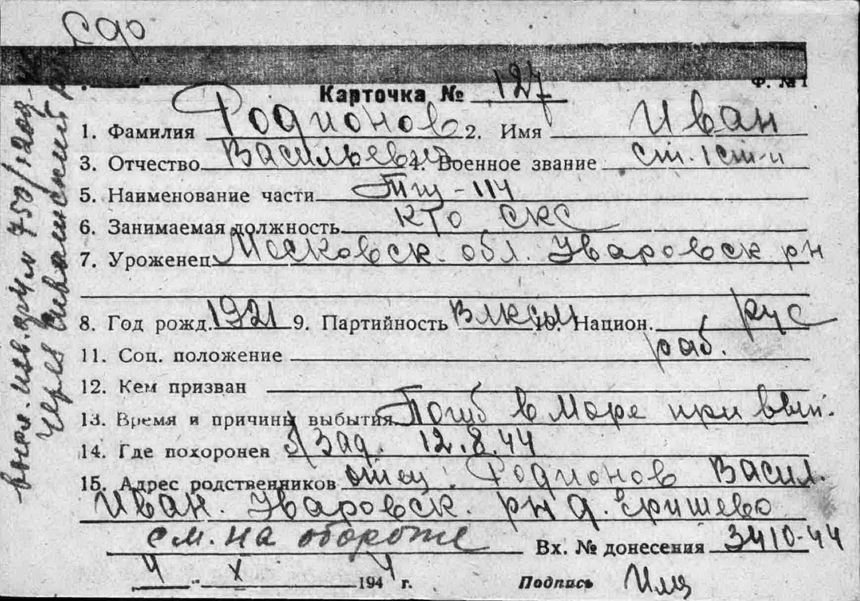 Карточка (ЦВМА, Картотека безвозвратных потерь).