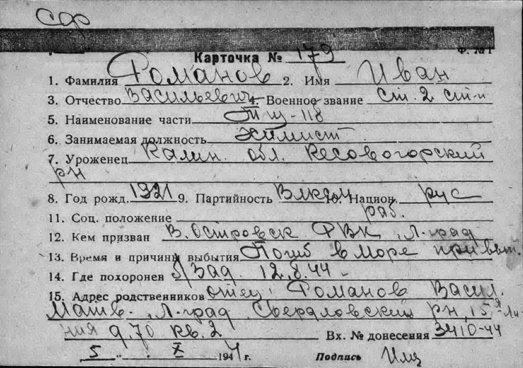 Карточка (ЦВМА, Картотека безвозвратных потерь).