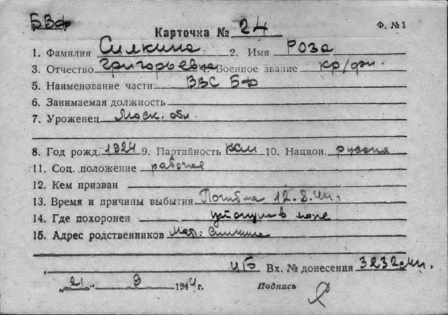 Карточка (ЦВМА, Картотека безвозвратных потерь).