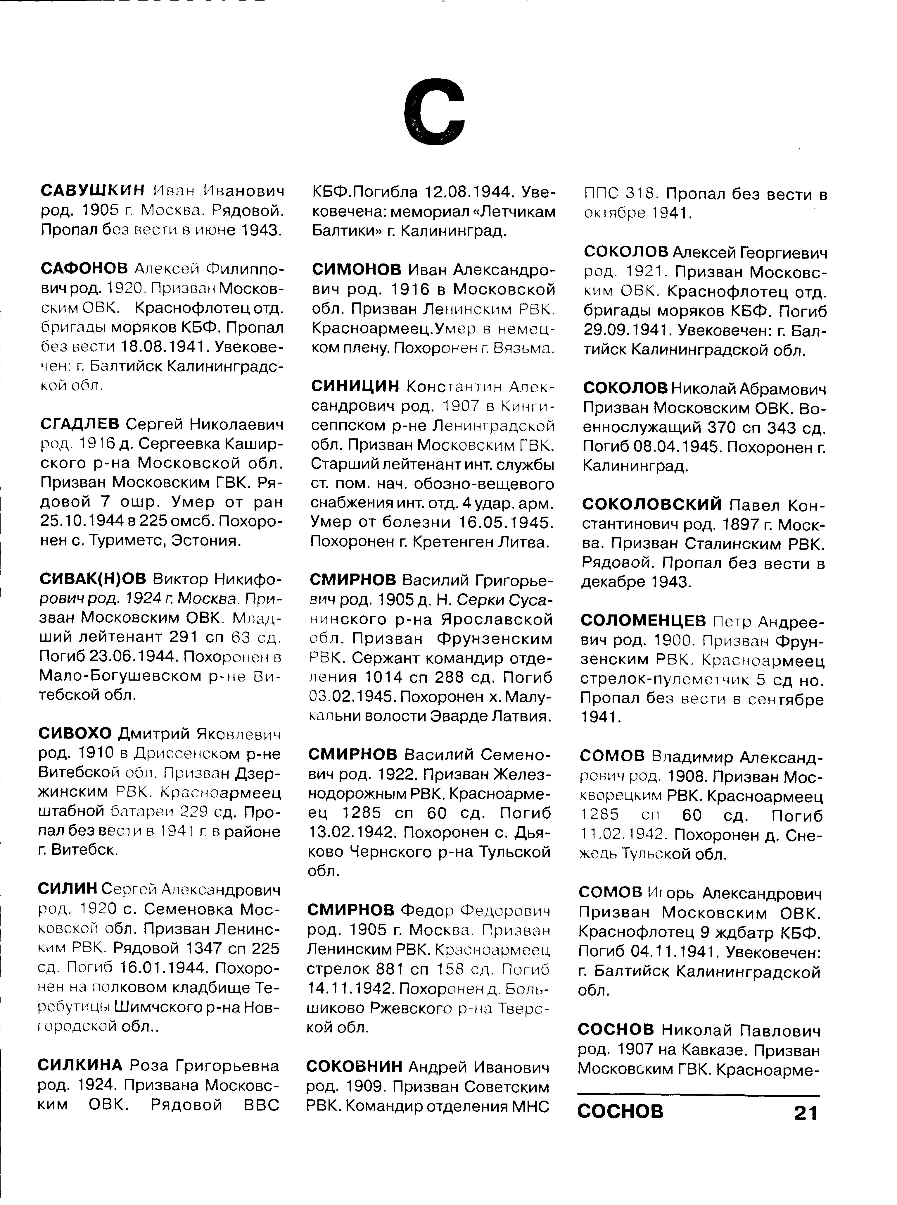 Книга памяти. г. Москва. Дополнительный том (1-20).