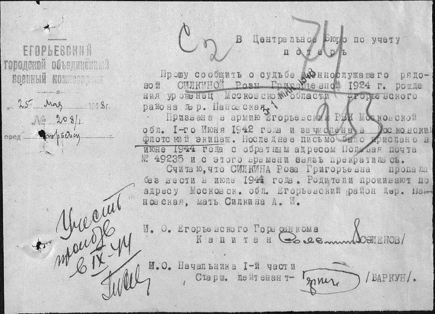 Донесение о безвозвратных потерях 3232 от 19.09.1944 (ЦВМА, Ф. 864, О. 1, Д. 1342).