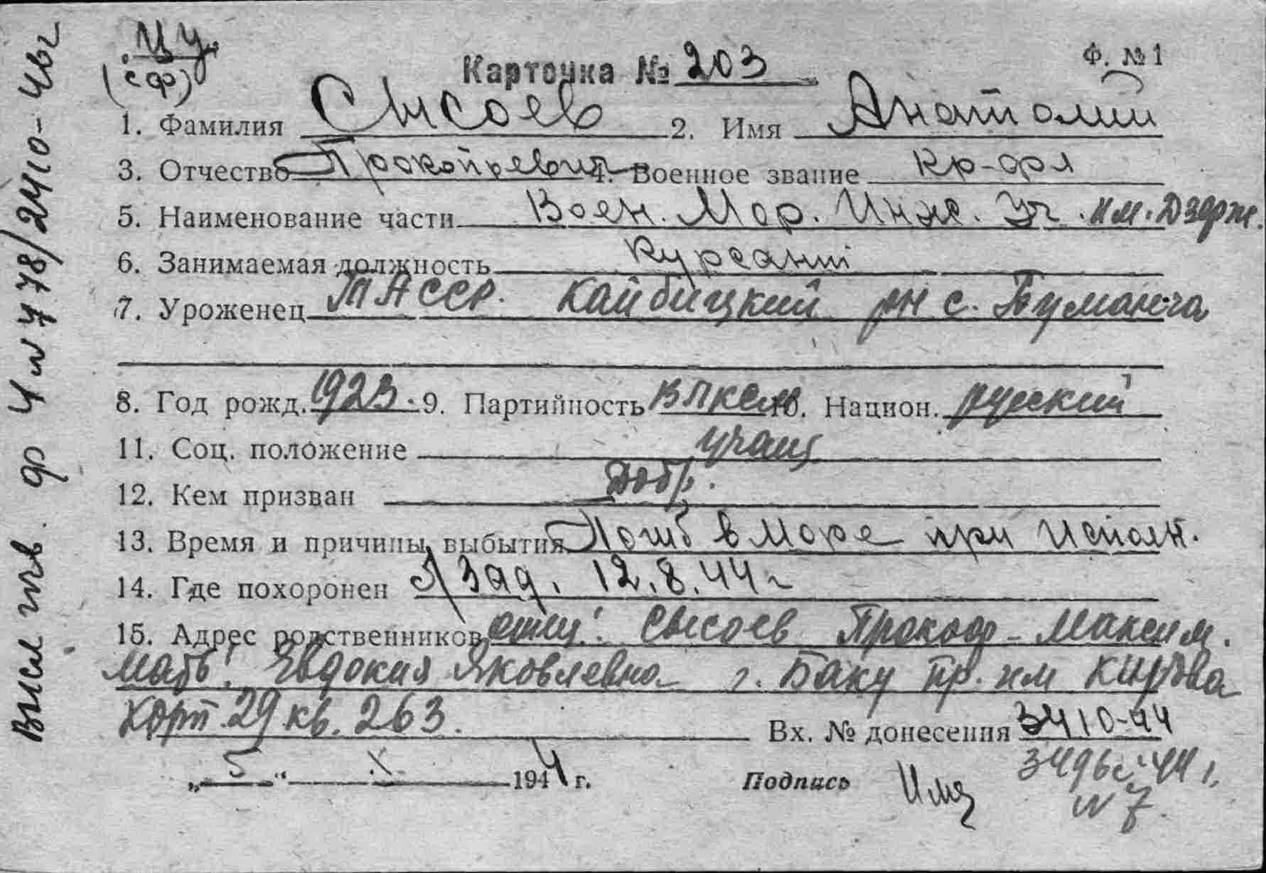 Карточка (ЦВМА, Картотека безвозвратных потерь).