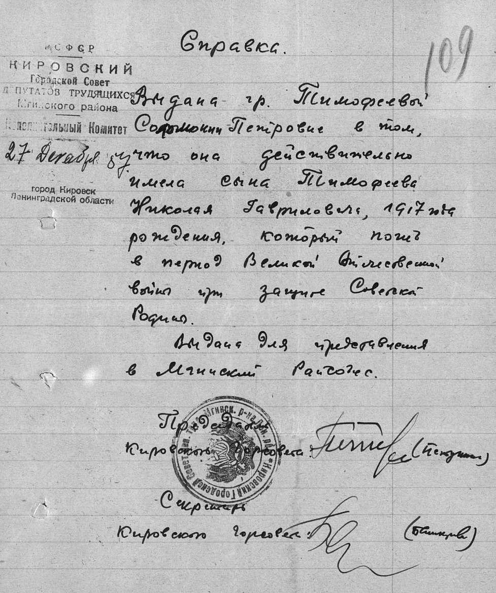 Донесение о безвозвратных потерях исх 02196 от 21.10.1944 (ЦВМА, Ф. 4038, О. 54, Д. 23).