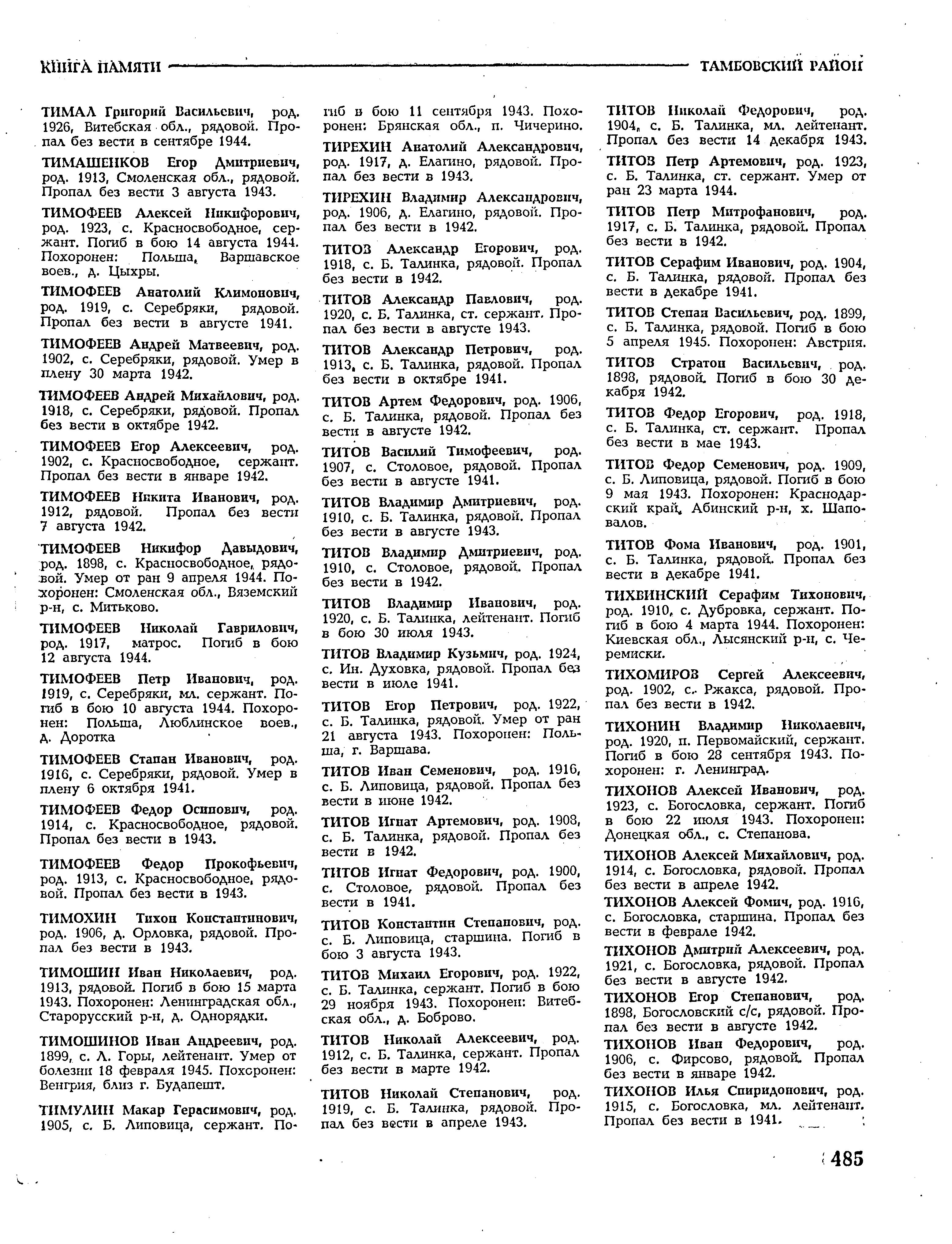 Книга памяти. Тамбовская область. Том 1.