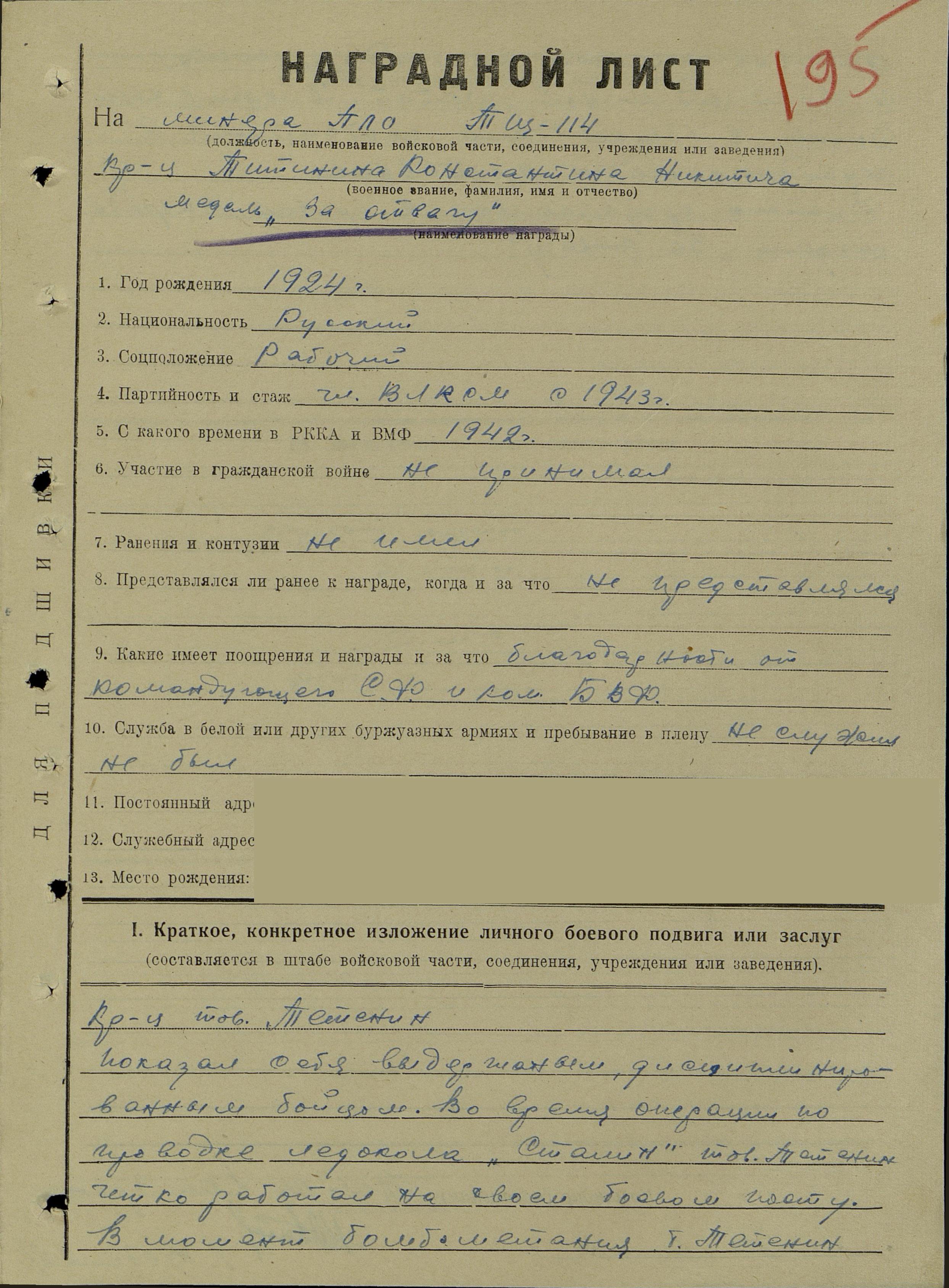 Карточка (ЦВМА, Картотека безвозвратных потерь).