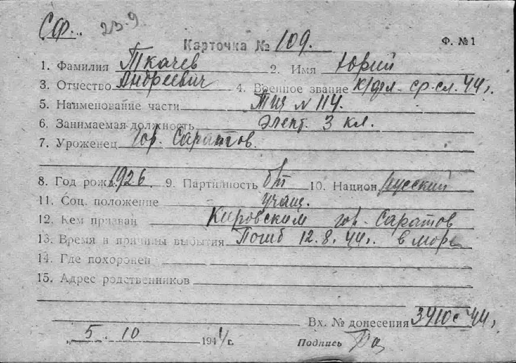 Карточка (ЦВМА, Картотека безвозвратных потерь).