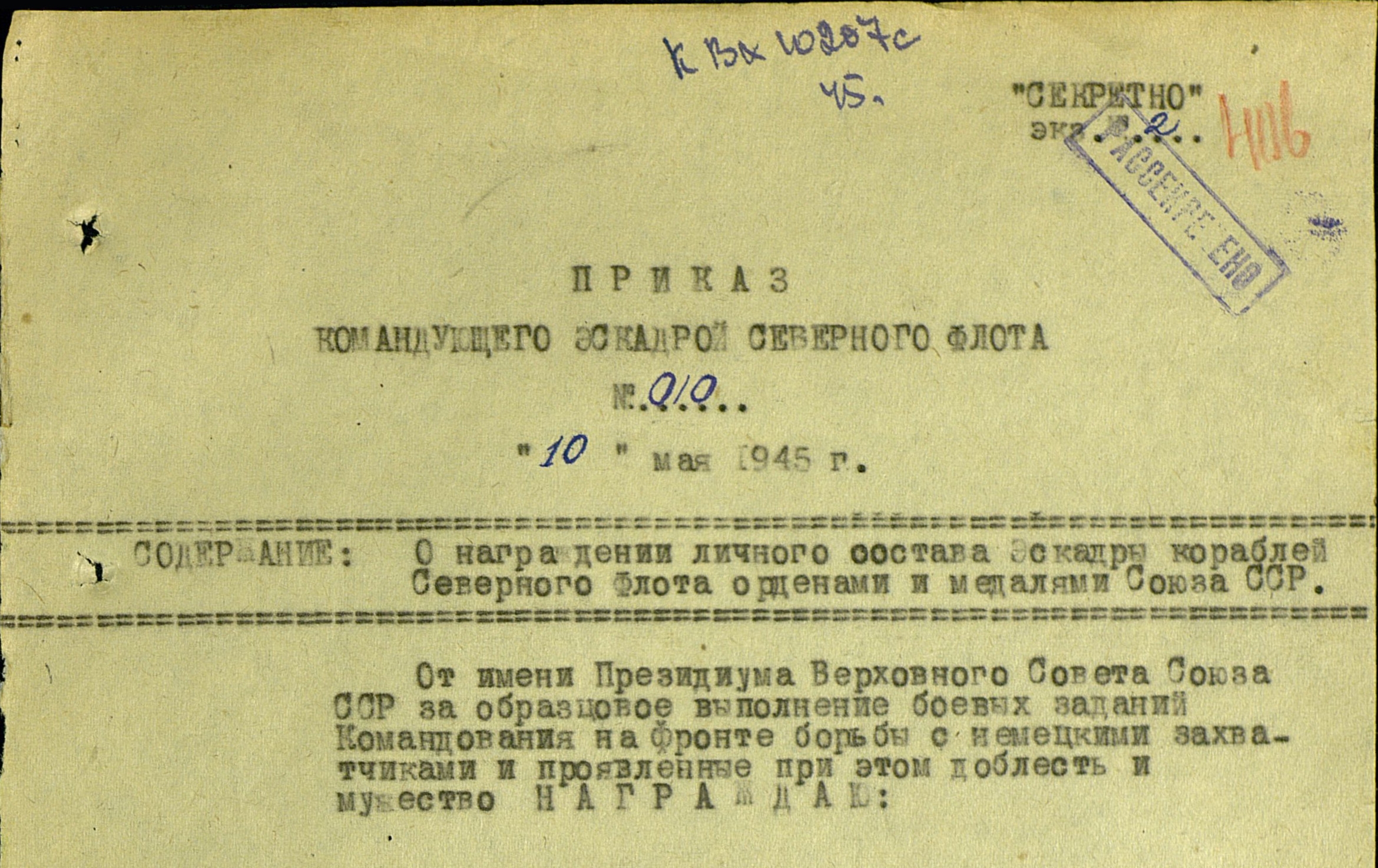 Наградные документы.