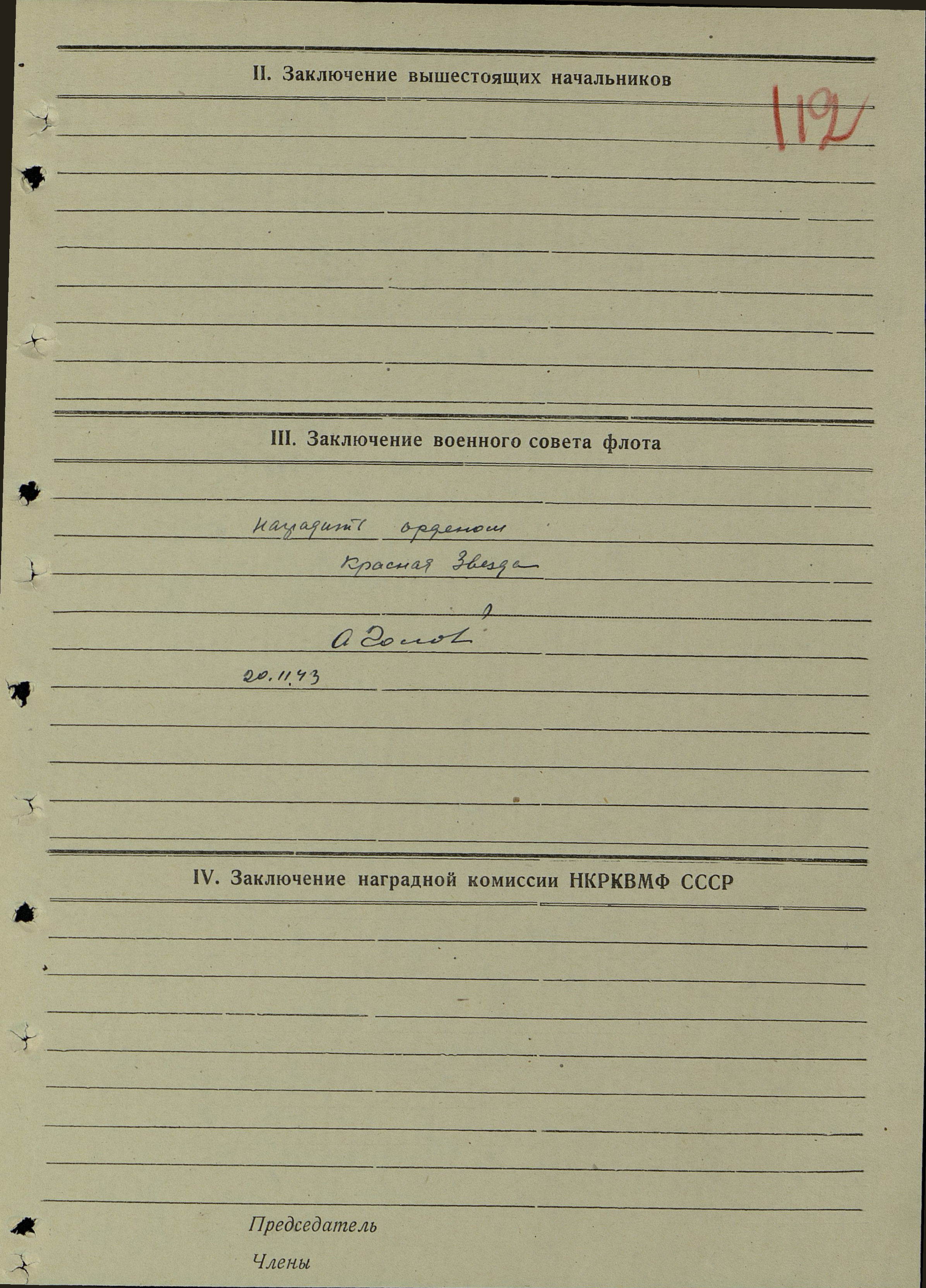 Ходатайствую о награждении т. Какурина орденом Красной Звезды.