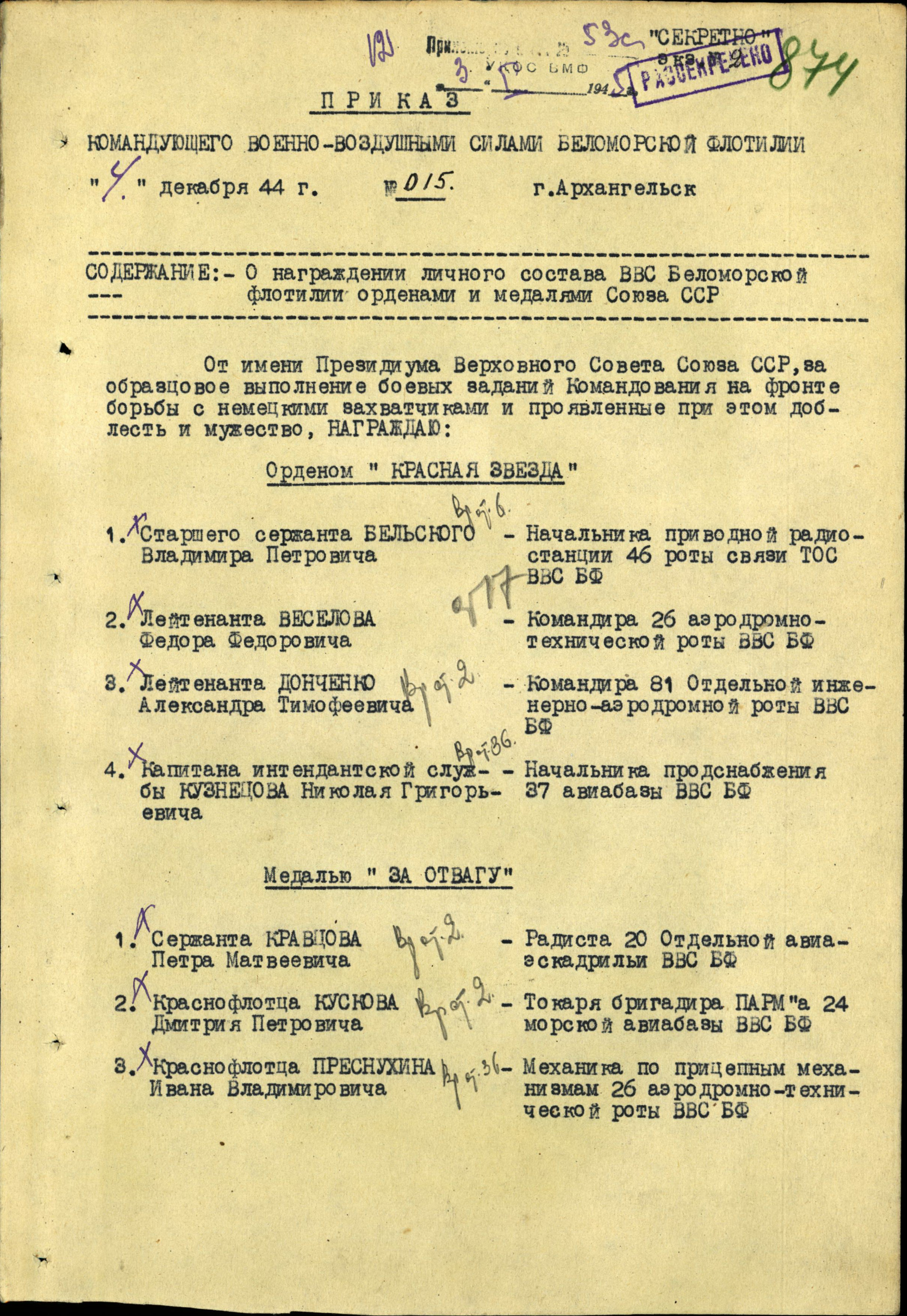 Наградные документы.