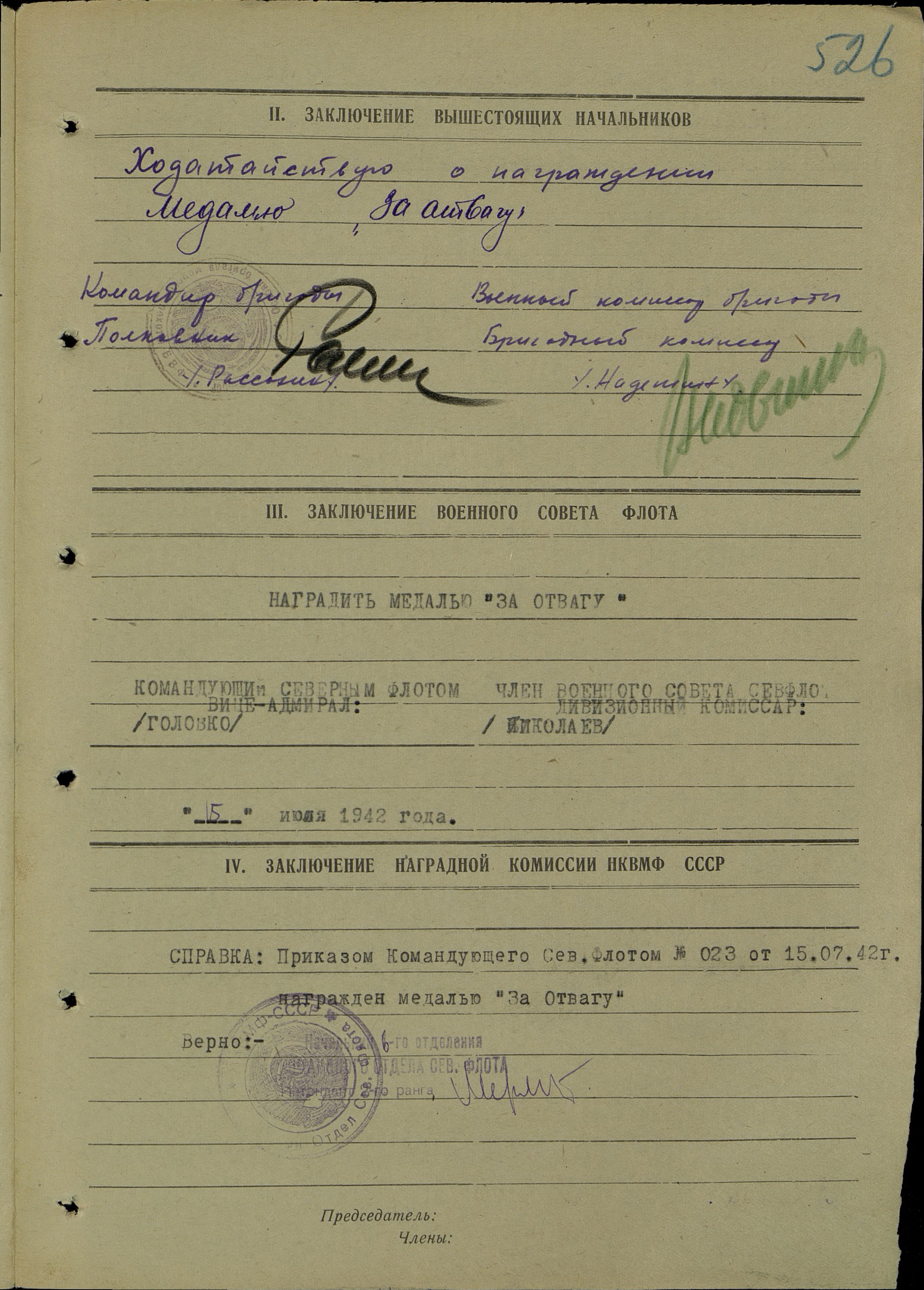Наградной лист.