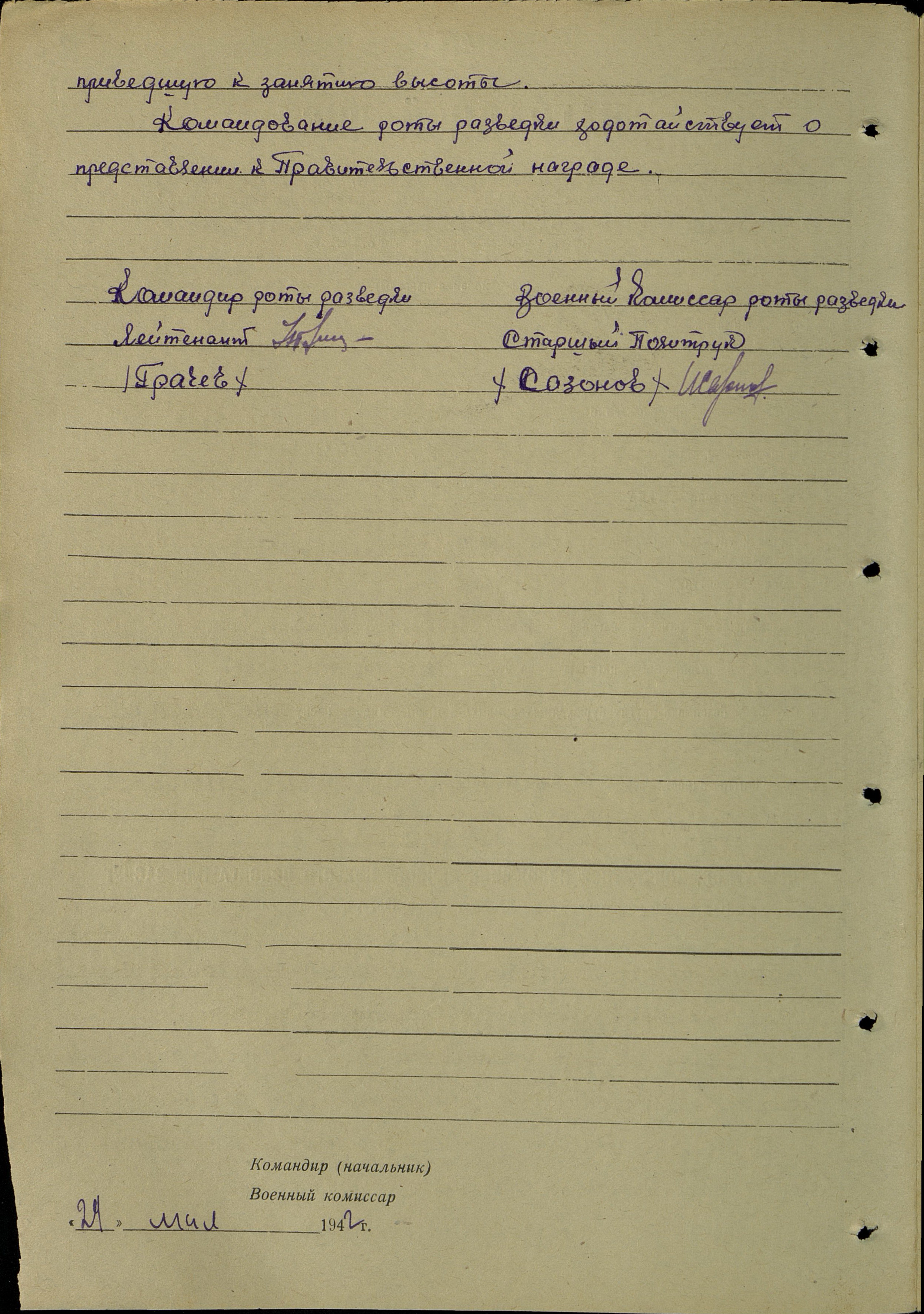 Командование роты разведки ходатайствует о представлении к правительственной награде.