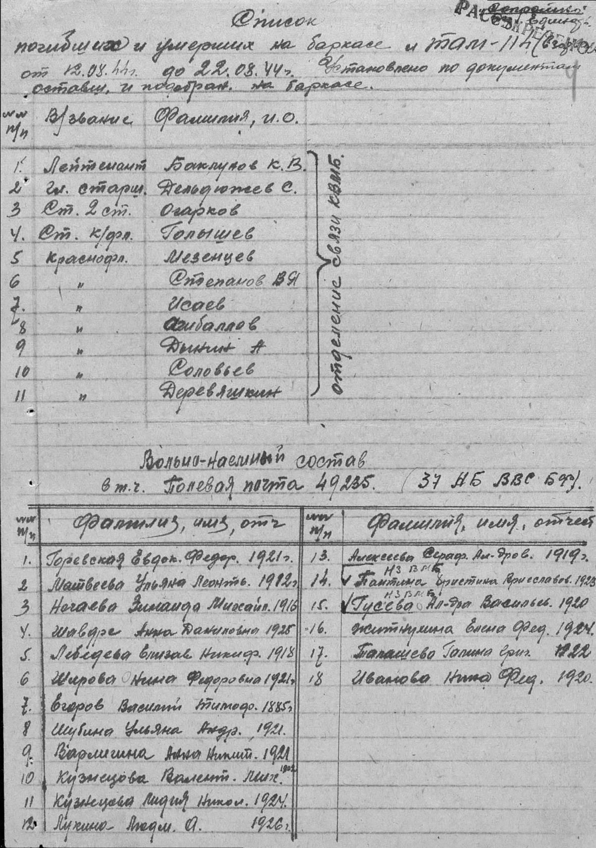 Донесение о безвозвратных потерях исх 0282 от 02.09.1944 (ЦВМА, Ф. 3303, О. 21874, Д. 2).