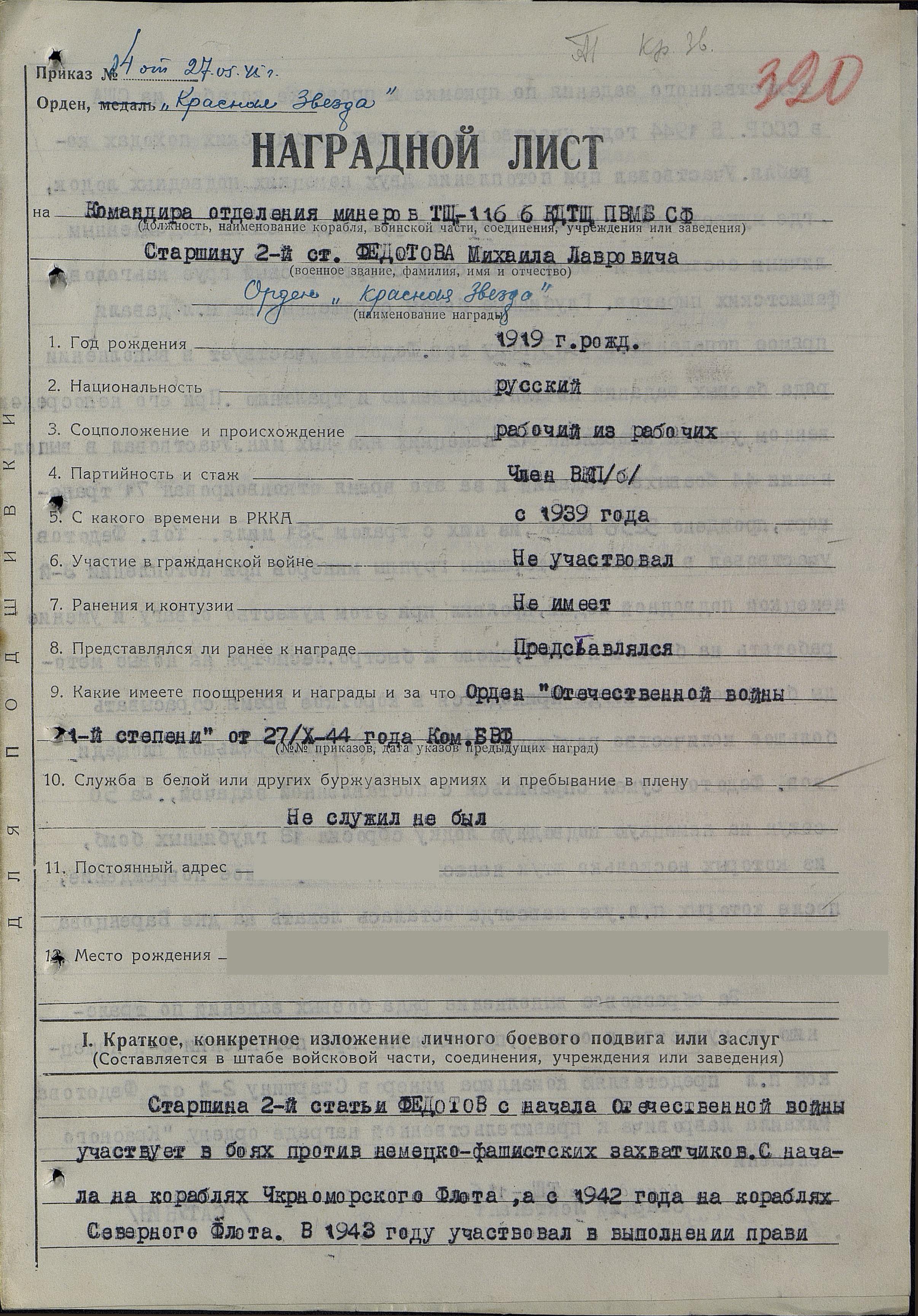610. Федотов Михаил Лаврович, краснофлотец, минер, тральщик ТЩ-116, в Ленинграде жил после войны.