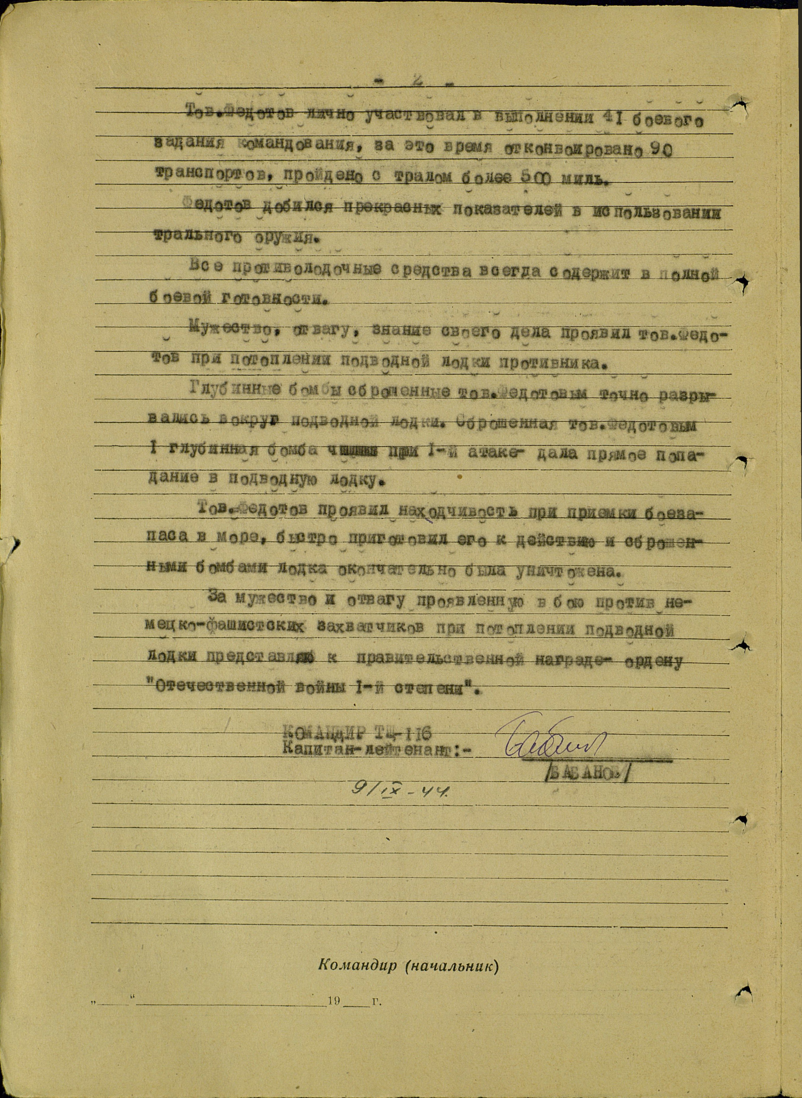 Командир корабля: капитан-лейтенант Бабанов.