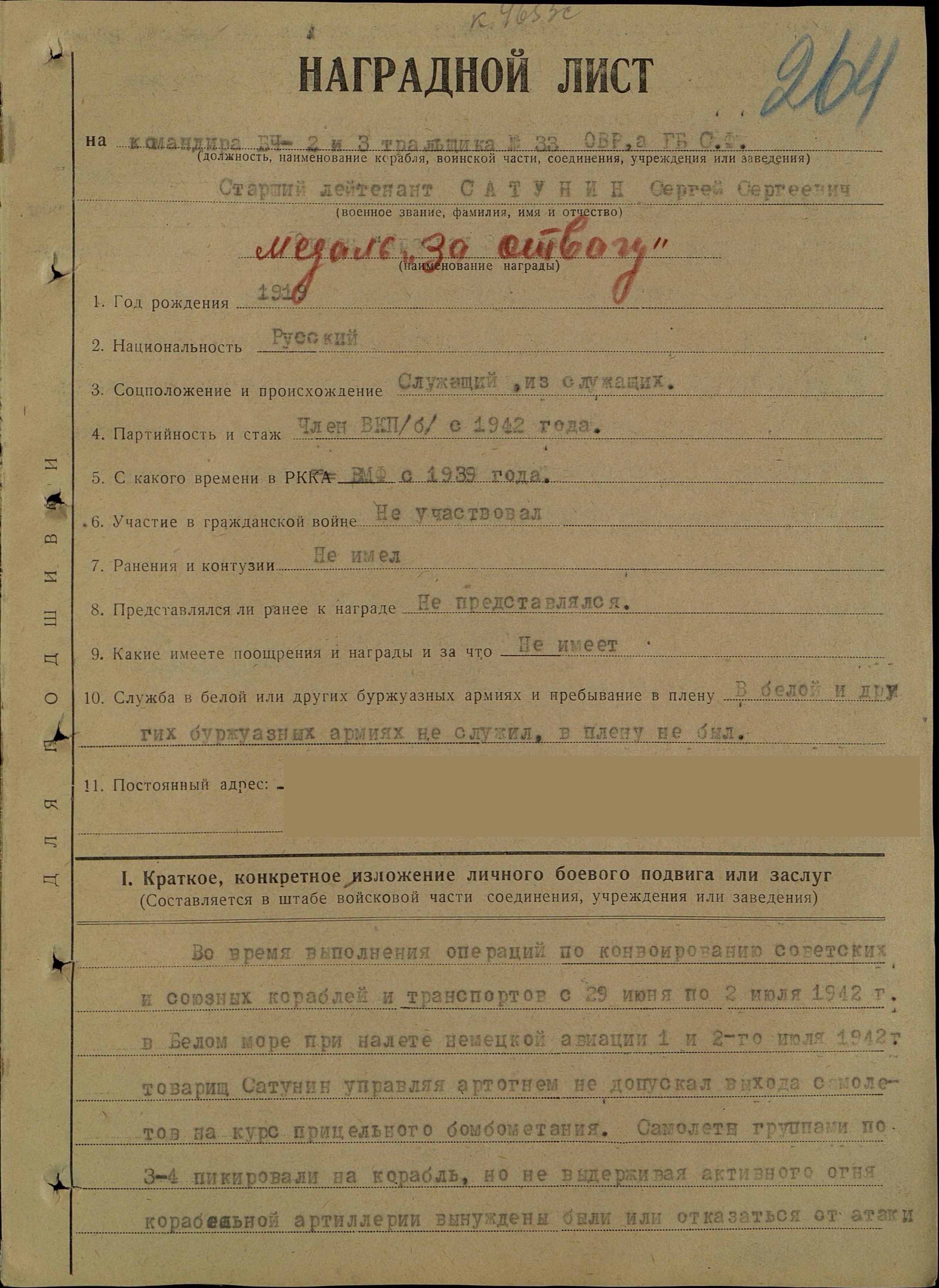 514. Сатунин Сергей Сергеевич, старший помощник командира тральщика ТЩ-116, старший лейтенант.