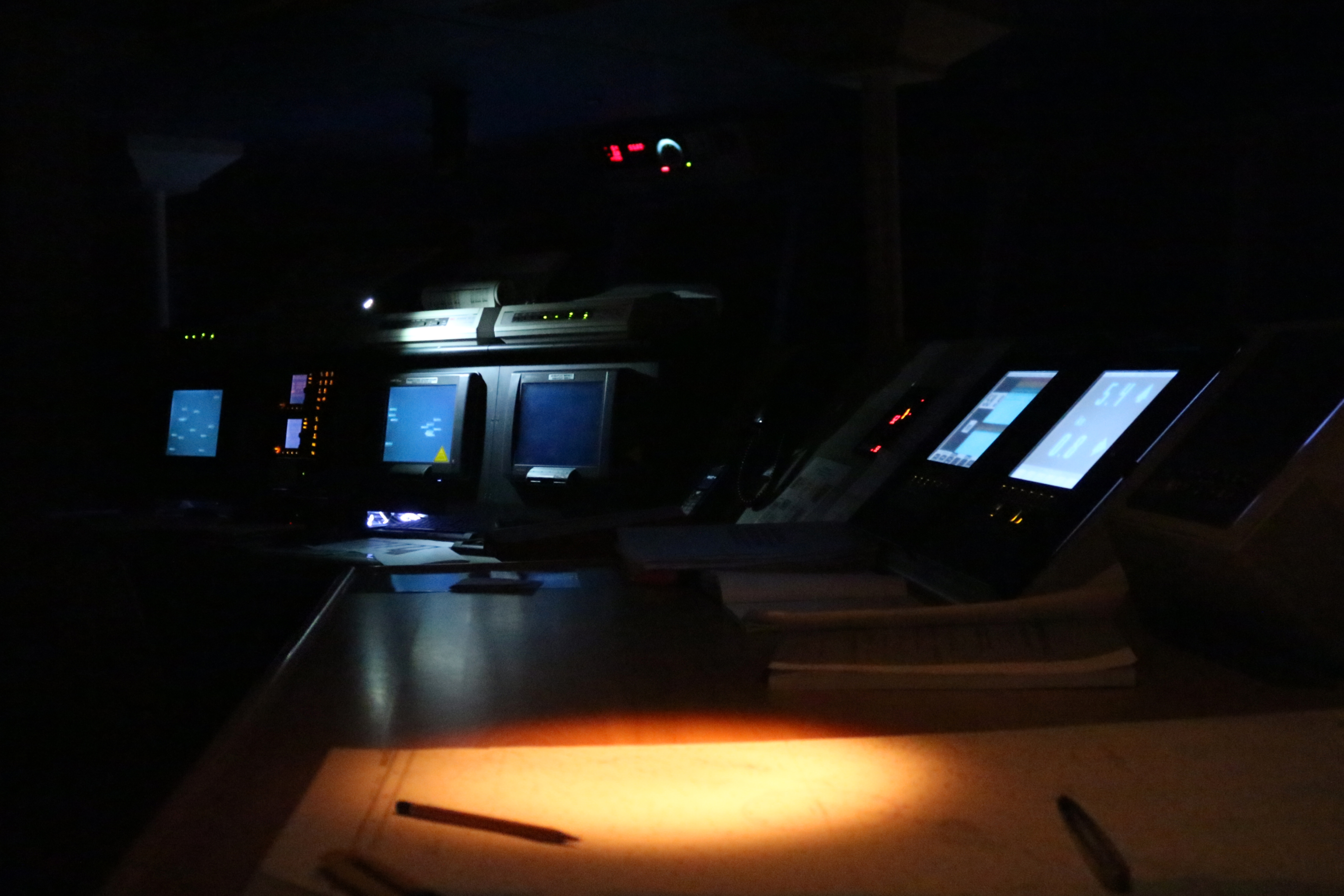 Мостик ночью похож на рубку космического корабля.