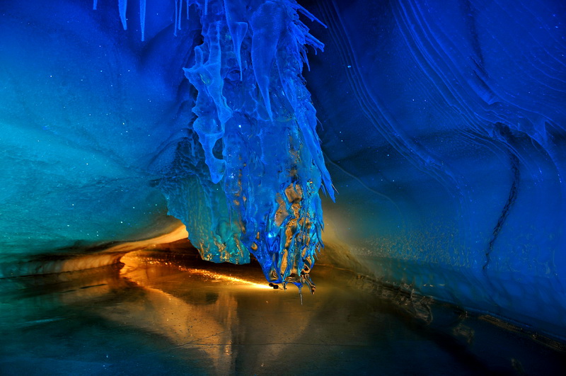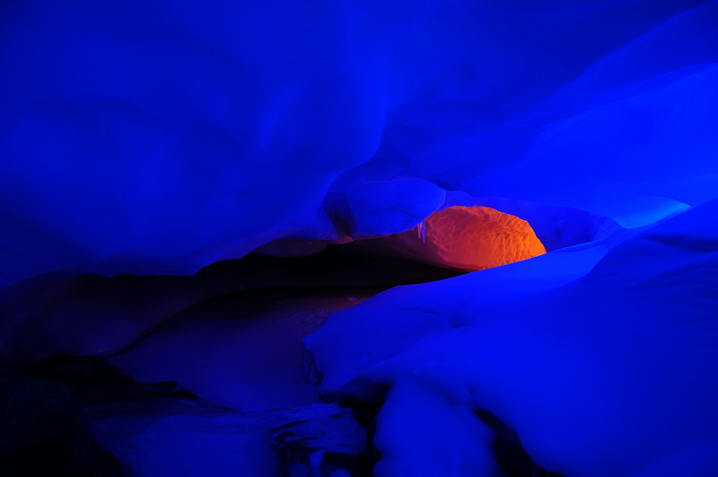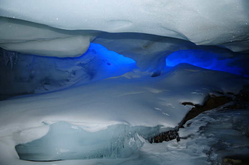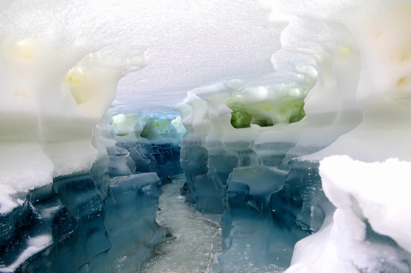 Антарктида. 2011. Станция Новолазаревская. Ледяные пещеры в айсбергах. Подсветка делалась при помощи фонариков и фильтров.