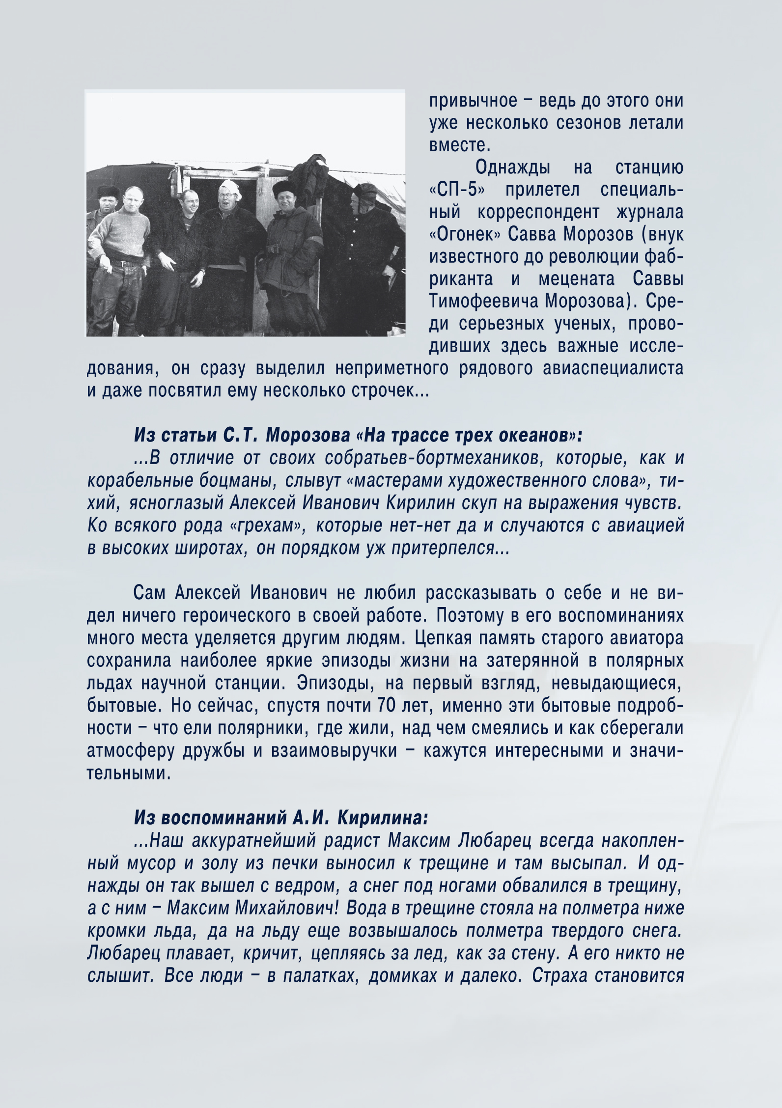 Во избежание этого аккуратнейший радист «СП-5» Любарец все-гда накопленный мусор и выгребленную из печи золу выносит к трещине и высыпает. И однажды он высыпал из ведра, а снег под ногами обвалился в трещину, а с ним – Максим Михайлович!