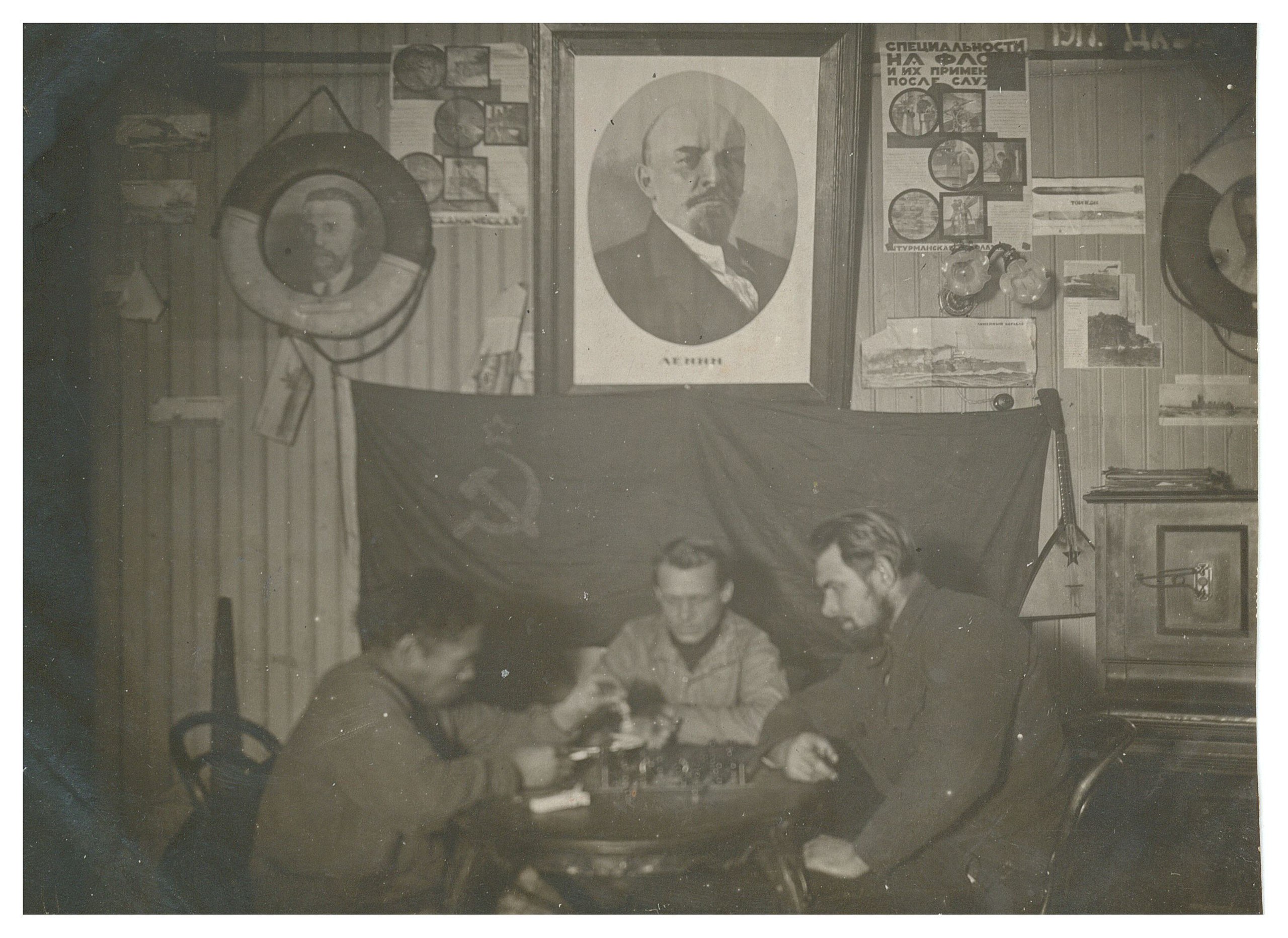 С 18 по 20 года работал также на п/х механником, принимал участие в первой Революции в пользу Советов. С 20 года состоял до 23 года КРАСНОФЛОТЦЕМ в службе связи и сейчас состою на учете мотористом Красного флота. С 23 года был откомандирован на радио станцию пом. Начальника Радиостанции в Кузнечихе. После до 25 года работал, по ликвидации станции, мотористом в Архсоюзе - в Печоре по сбору рыбы, с 25 года по 26 год работал в Маймаксанском ЦРК также мотористом.