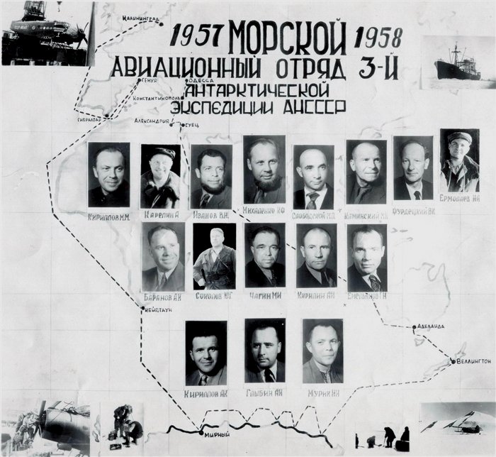 Прикладываю фото авиаторов морского отряда третьей антарктической экспедиции. Кирилин - второй справа в среднем ряду. Его командир - известный полярный летчик М.Н. Каминский - третий справа в верхнем ряду.