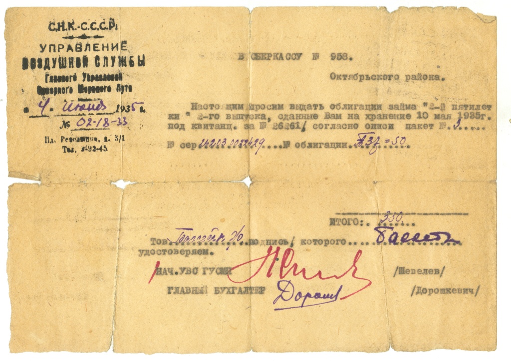 Нашлась ещё одна бумага из 1935 года: