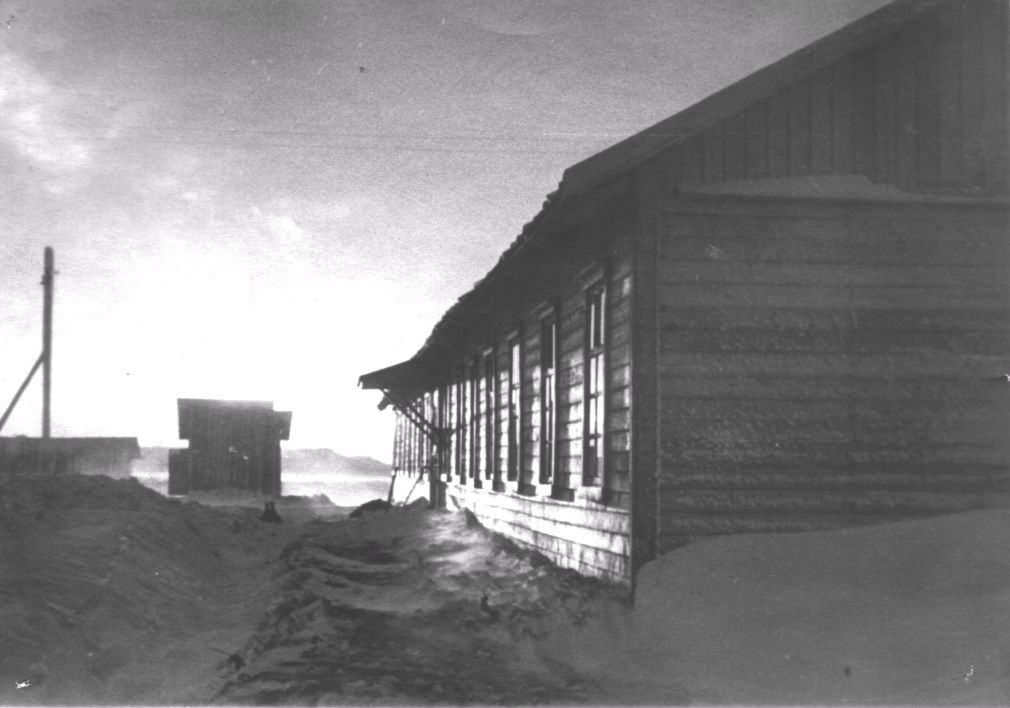 К январю наши дома занесло снегом на высоту до трех—четырех метров так, что после нескольких дней сильной пурги мы оказались покрытыми снегом до самых крыш и, чтобы выйти наружу для расчистки снега от дверей и окон, вылезали через чердачные окна на крыше. На море часто бушевали штормы и до нас доносился шум мощного морского прибоя. Вестей с "большой земли" почти никаких не получали. Очень скудные сведения о войне нам сообщали только наши радисты, державшие связь с Воркутой. Время тянулось долго и достаточно однообразно.
