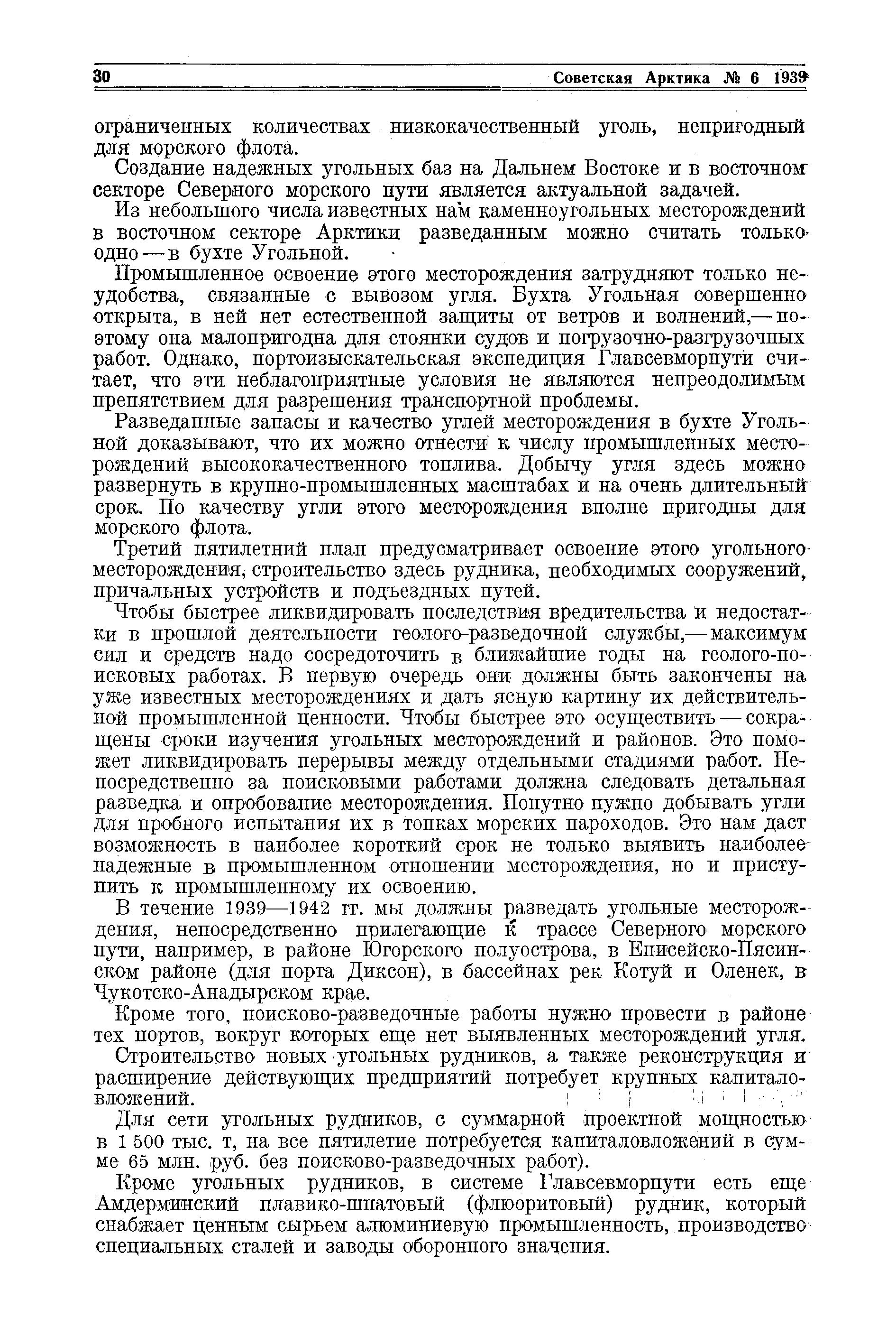 Все эти обстоятельства требуют от нас как можно скорее создать собственные мощные угольные рудники по трассе Северного морского пути. Эта задача имеет не только крупное народно-хозяйственное, но и политическое и оборонно-стратегическое значение.