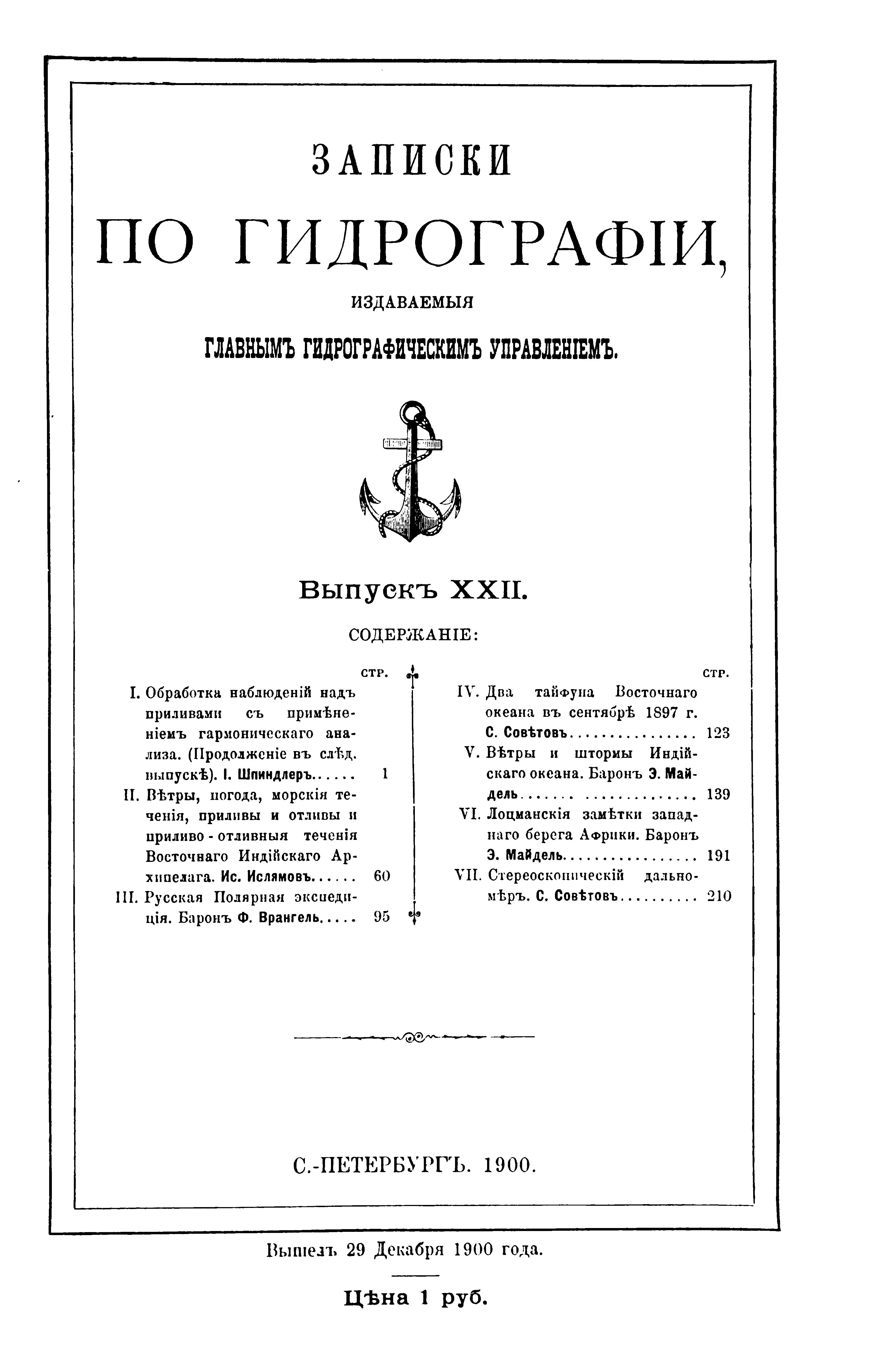 Записки по гидрографии. Вып. 22. - СПб., 1900