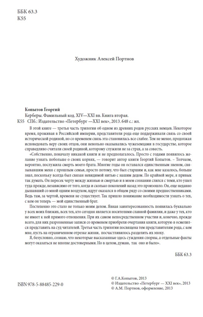 Копытов Г.А. Керберы. Фамильный код. XIV-XXI вв.