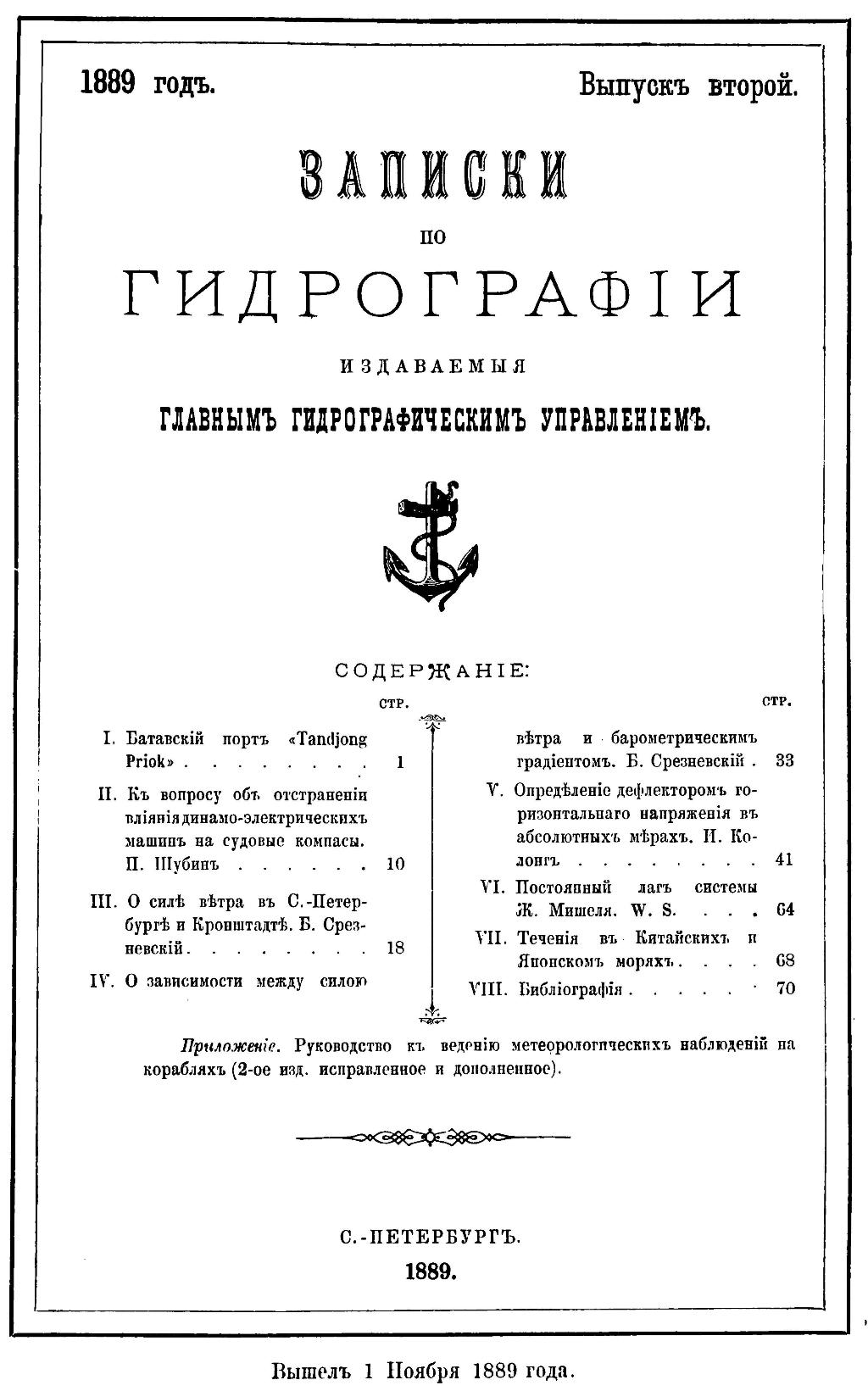 Записки по гидрографии. Вып. 2. - СПб., 1889