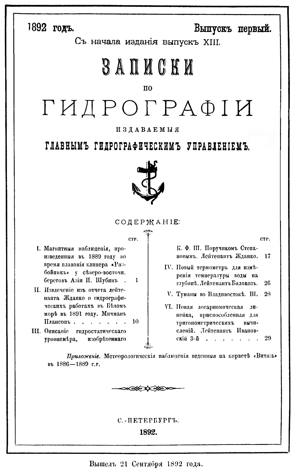 Записки по гидрографии. Вып. 1 (С начала издания вып. XIII). - СПб., 1892