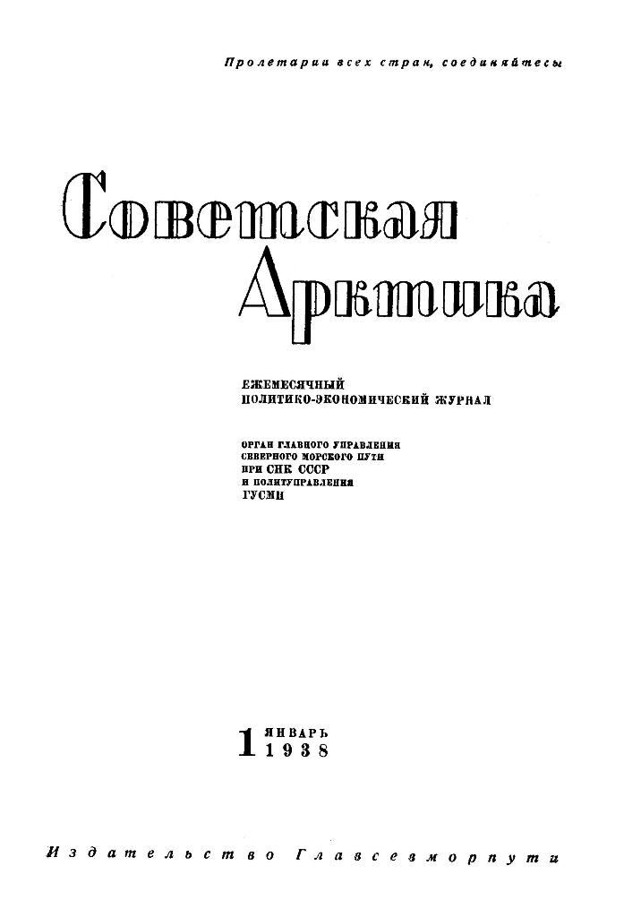 Журнал "Советская Арктика", ГУСМП, 1938, №1