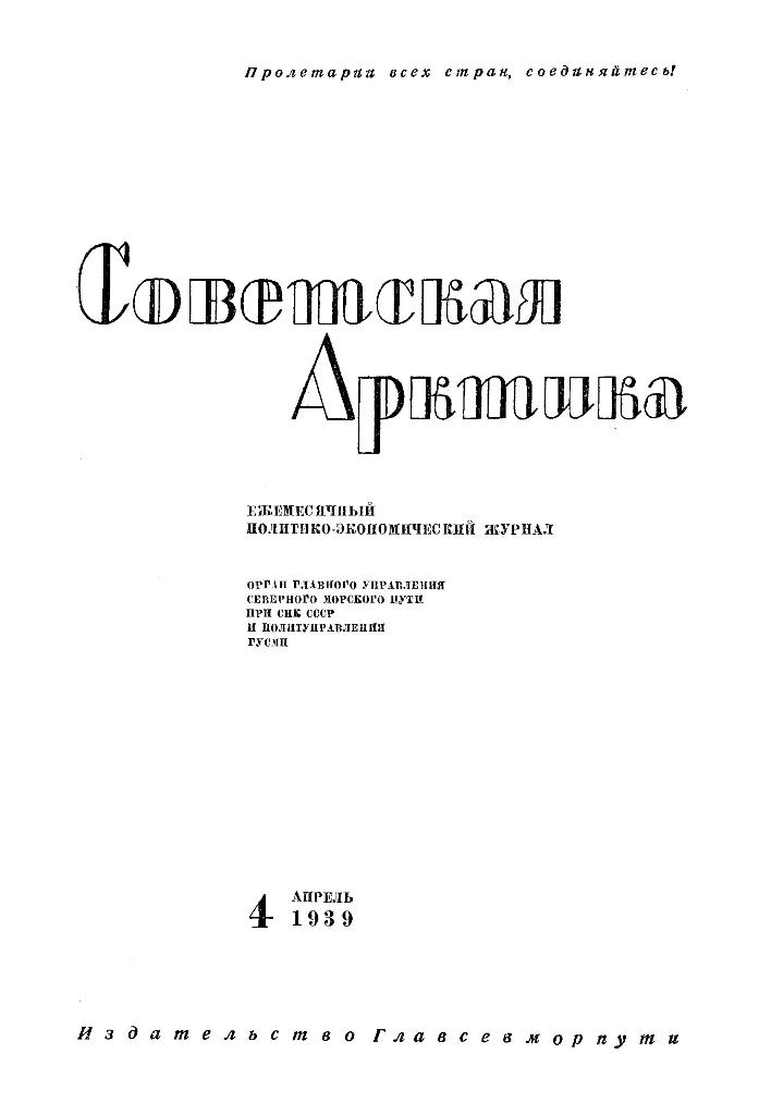 Журнал "Советская Арктика", ГУСМП, 1939, №4